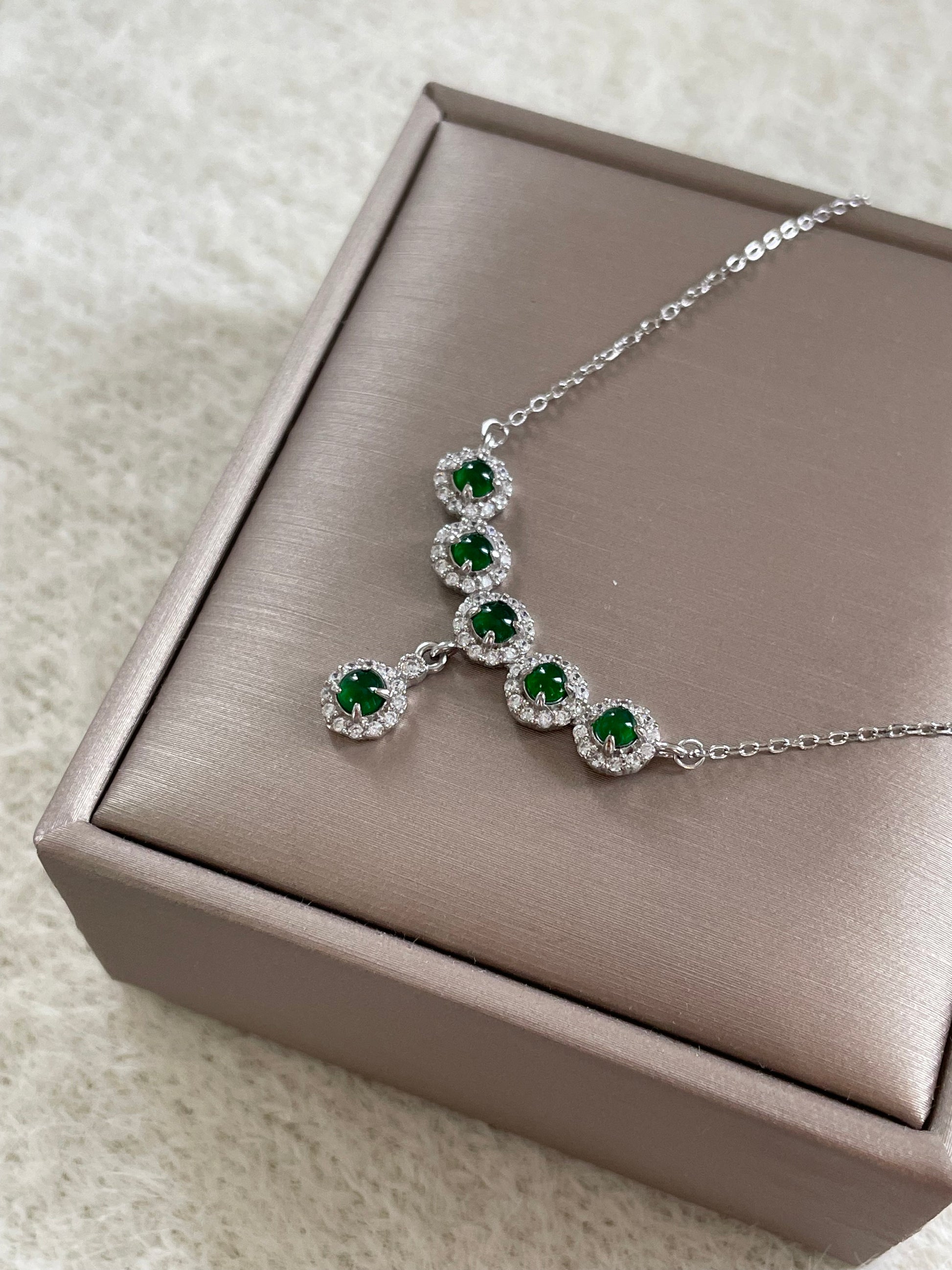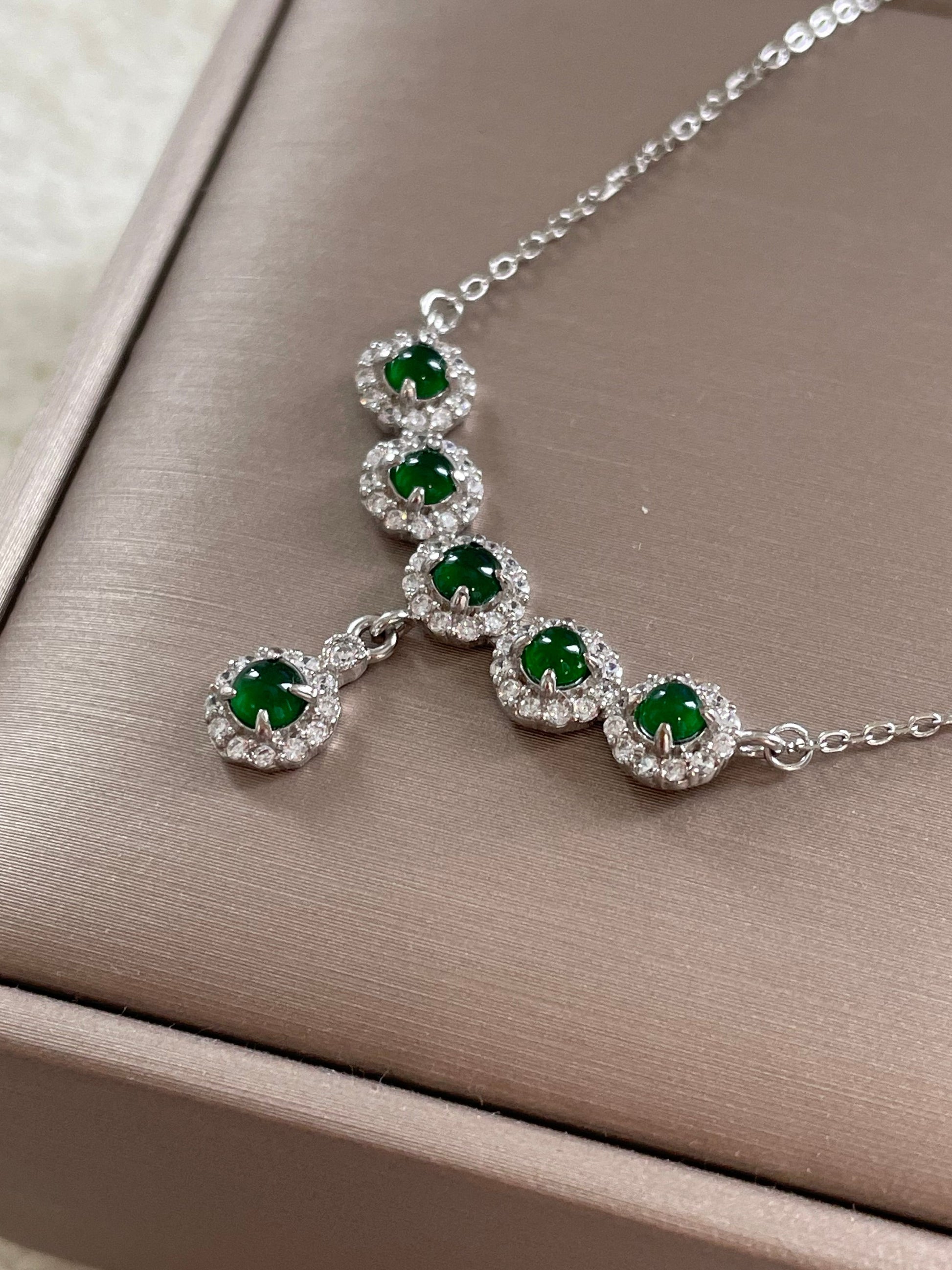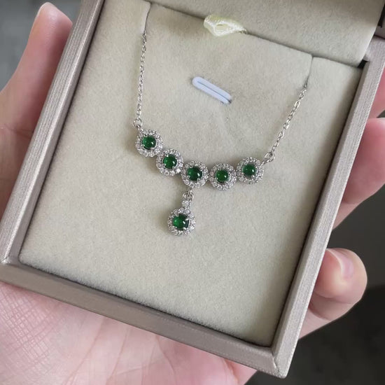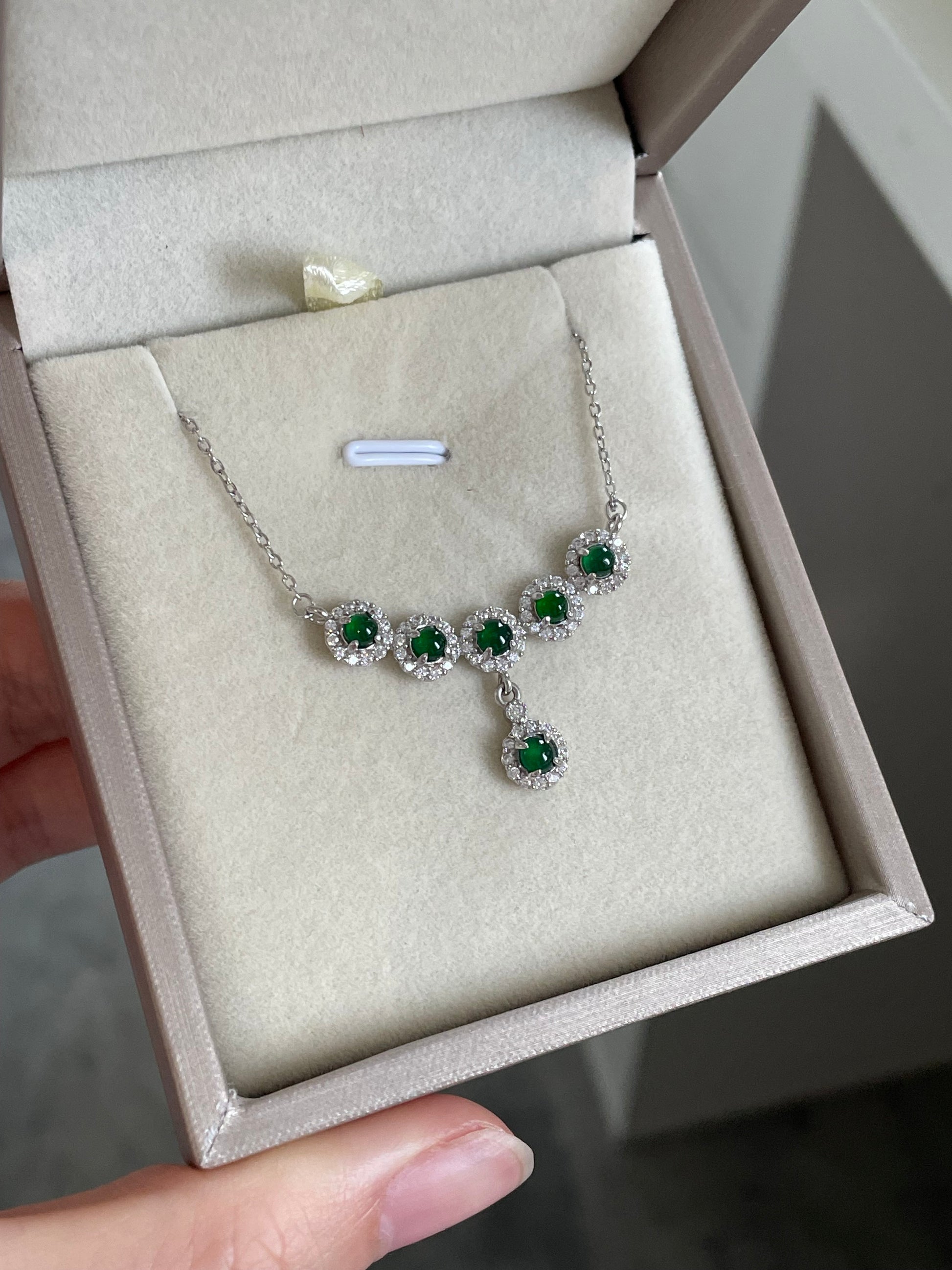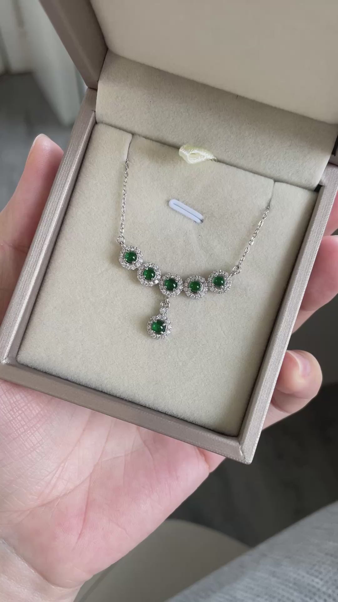 天然危地马拉翡翠;完美无纹裂;配925纯银项链;附鉴定证书。