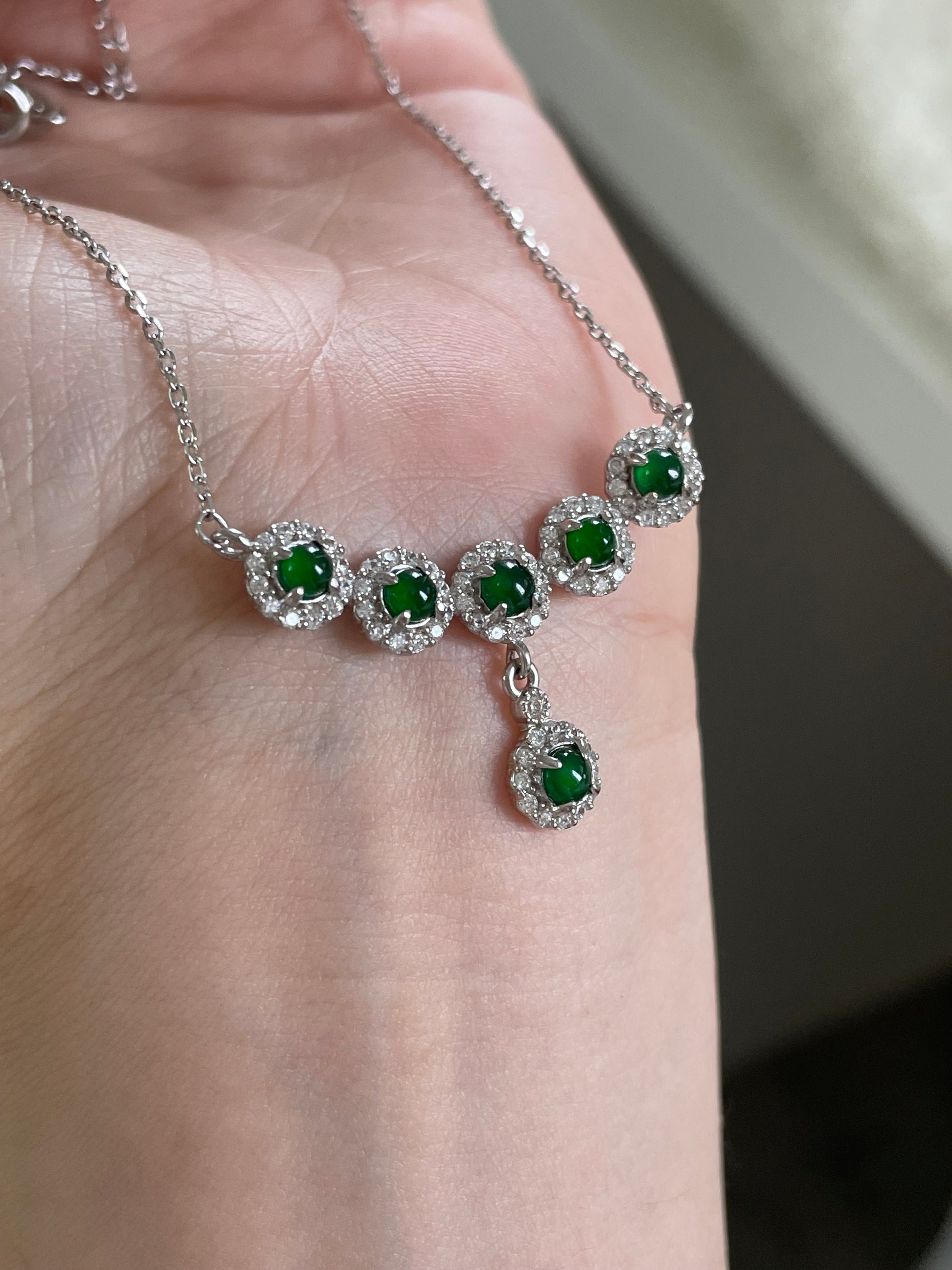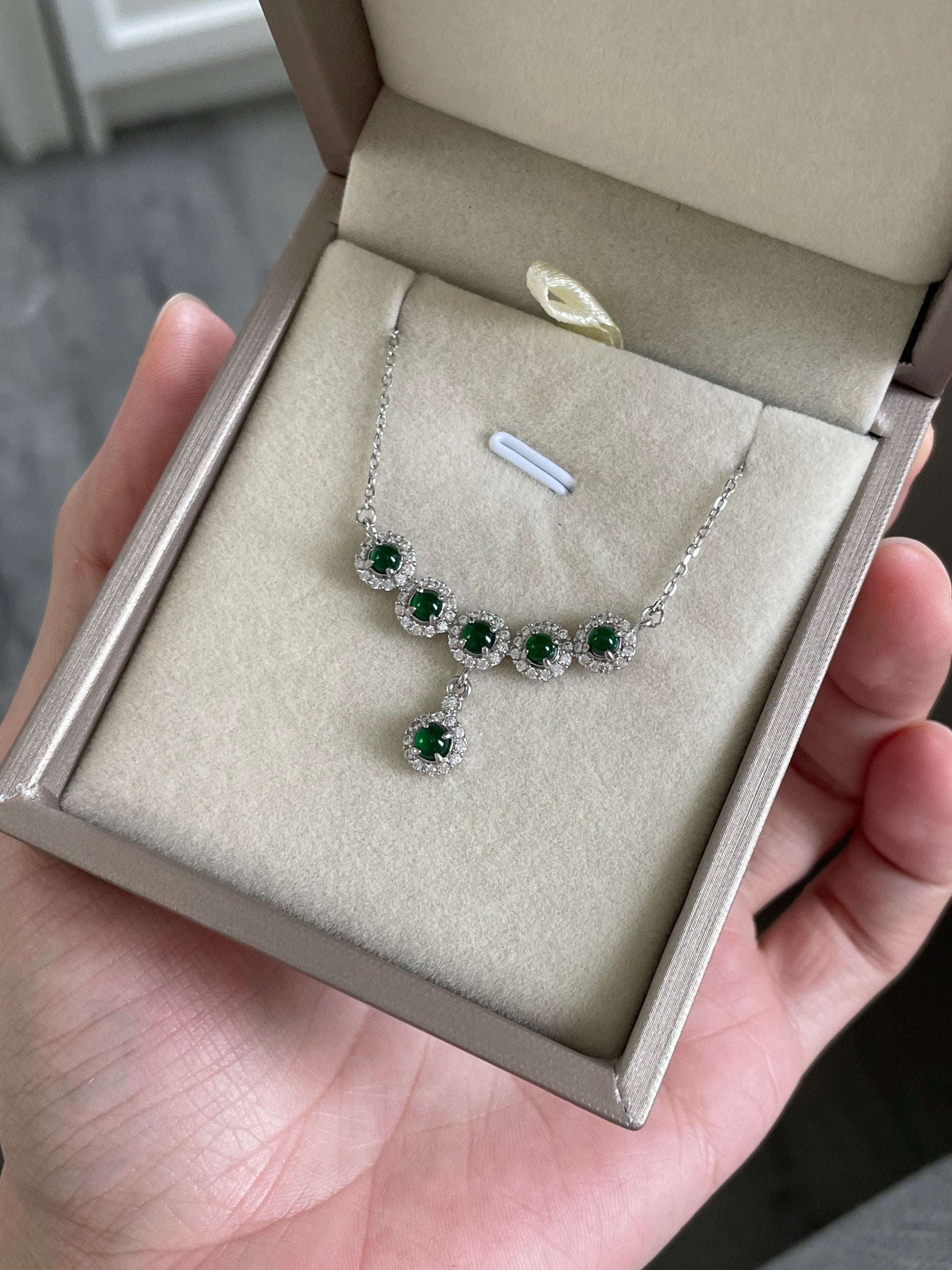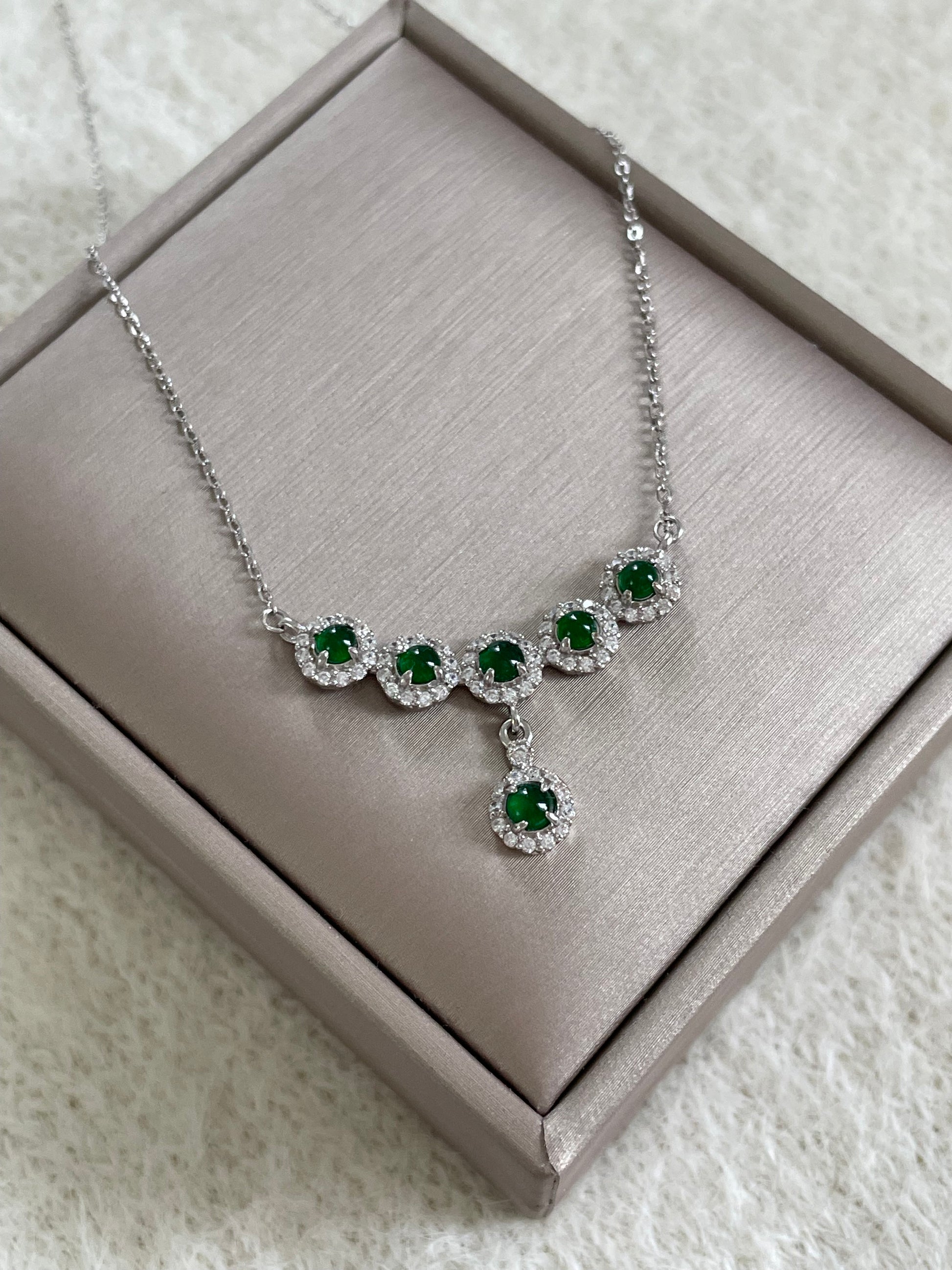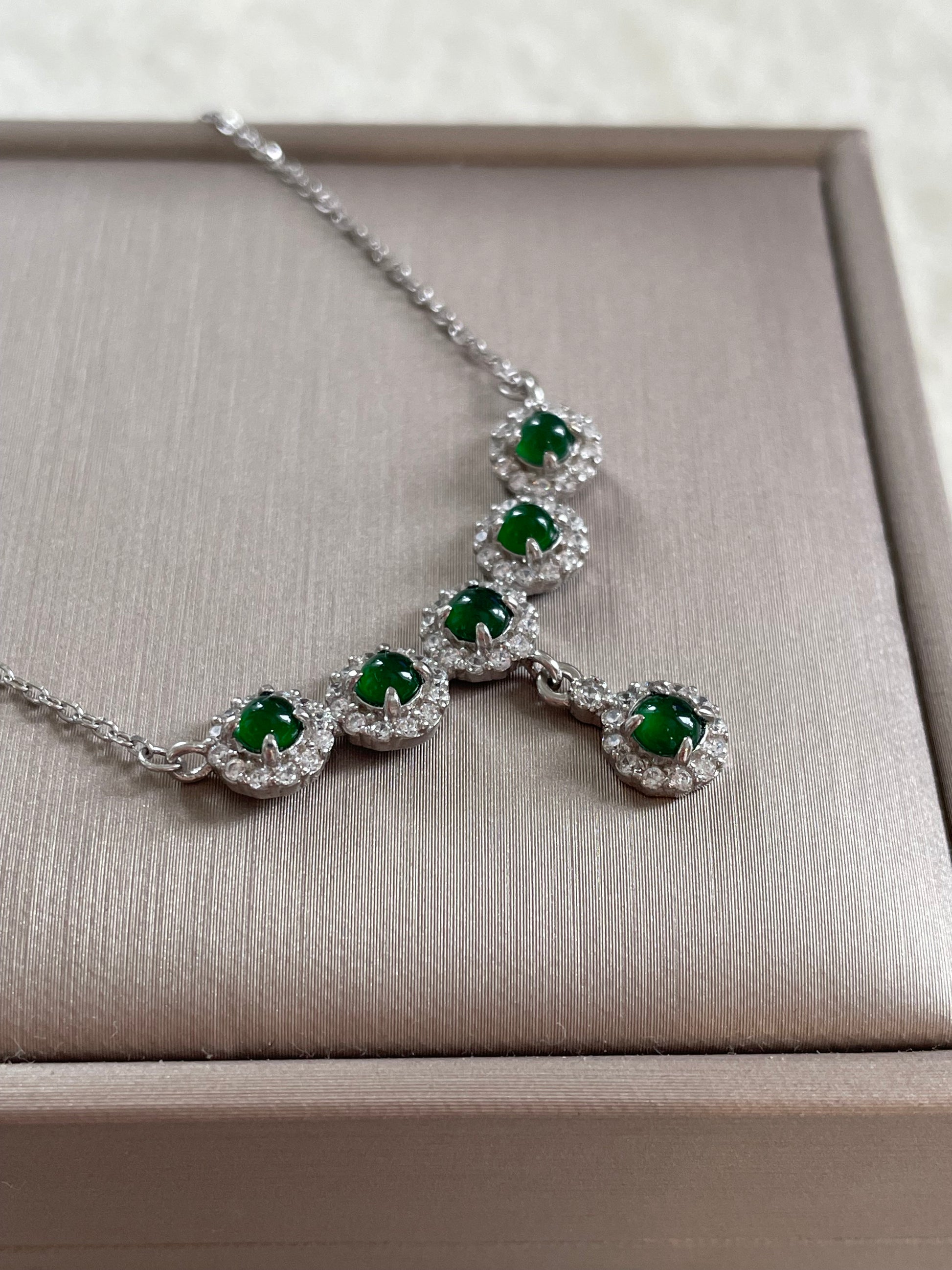 天然危地马拉翡翠;完美无纹裂;配925纯银项链;附鉴定证书。