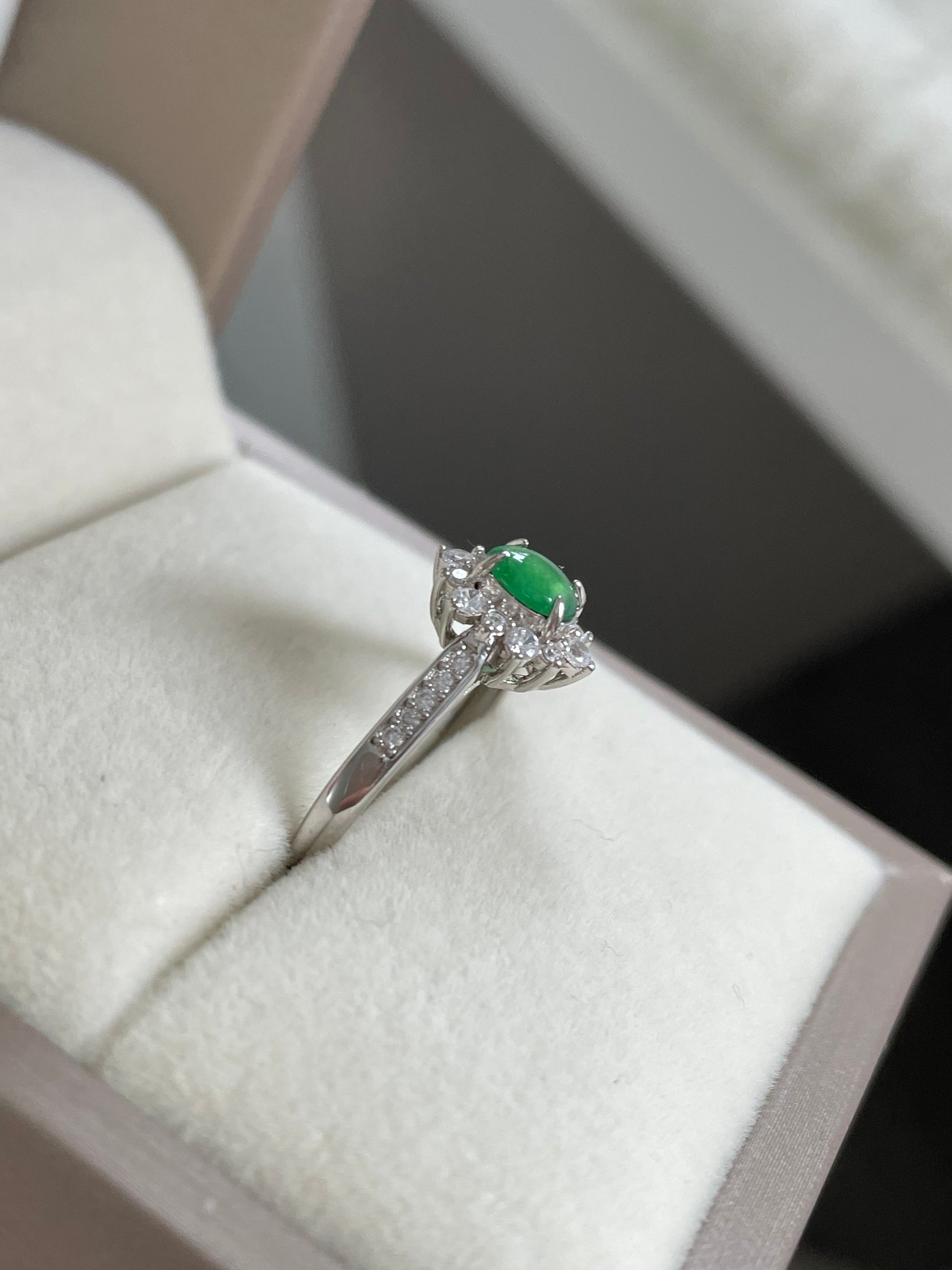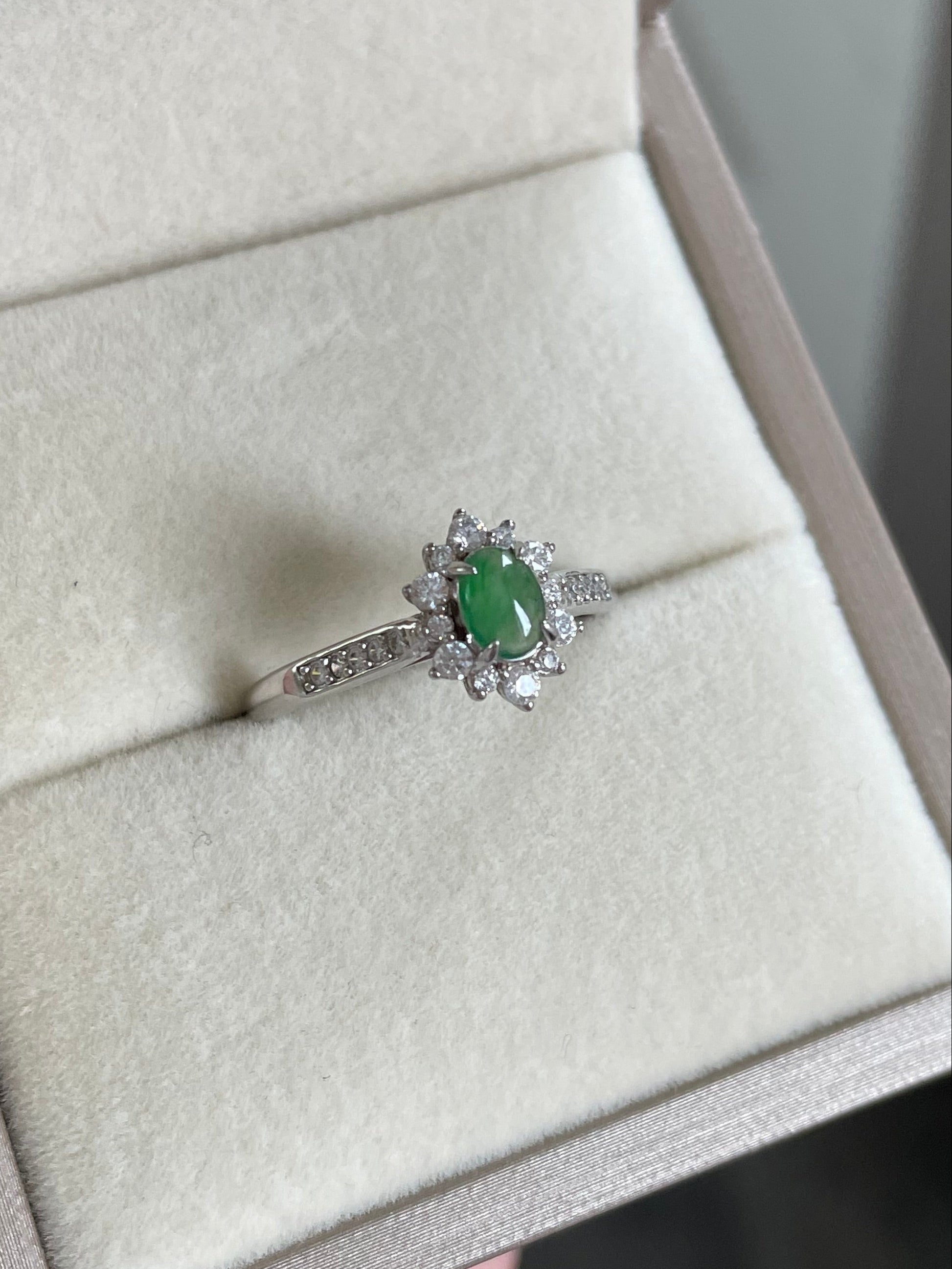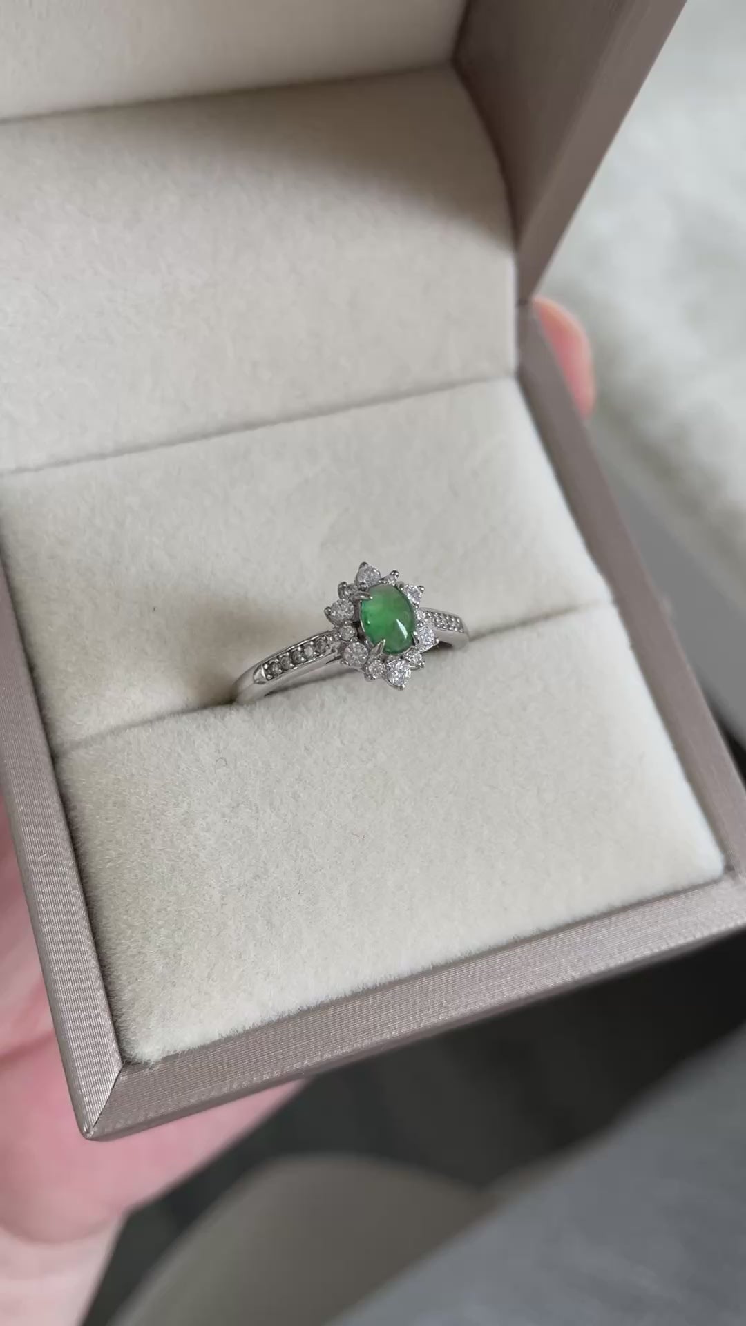 天然缅甸翡翠;戒圈尺寸可调节;附鉴定证书。