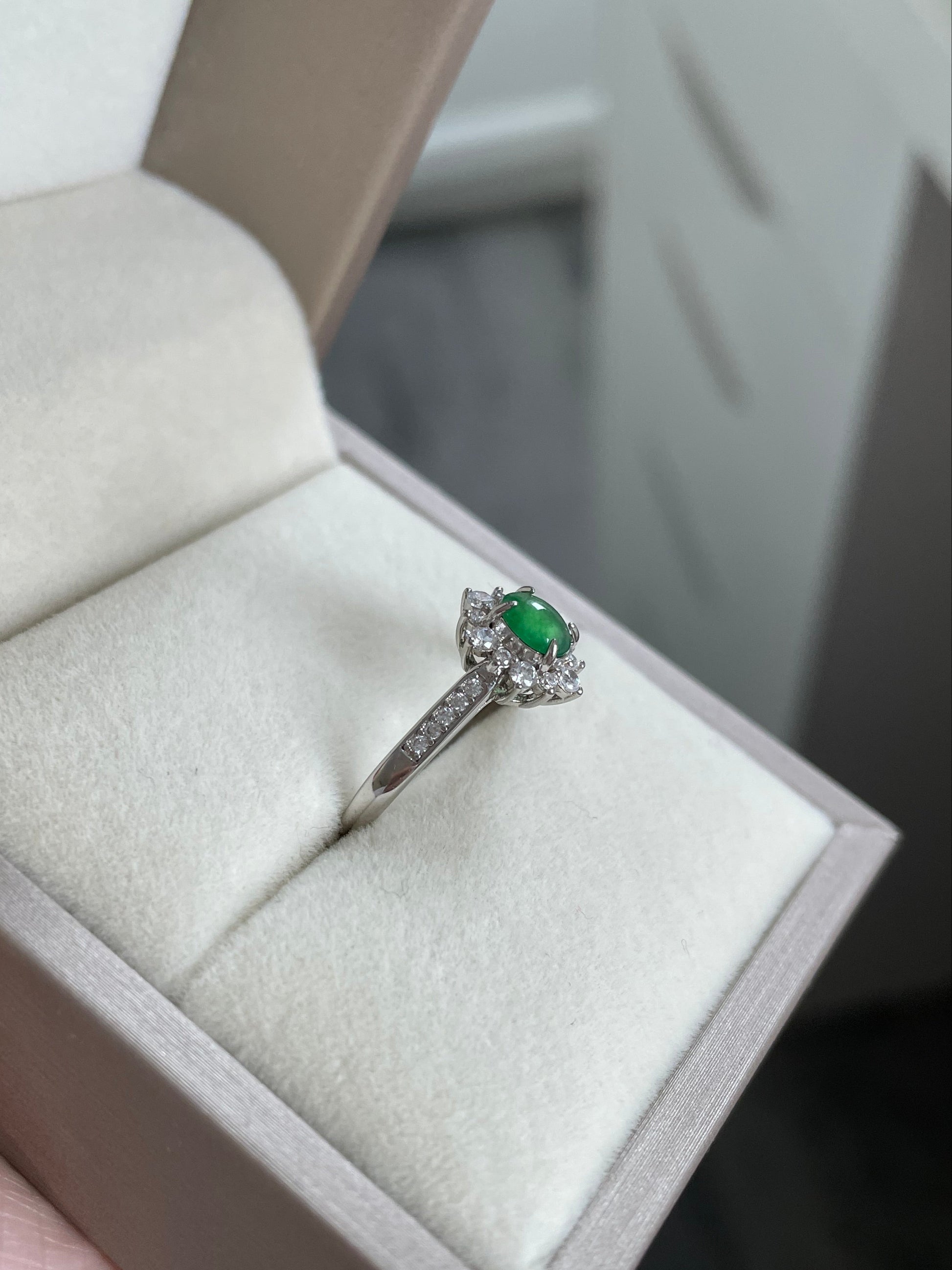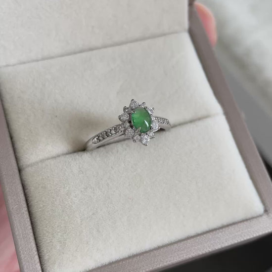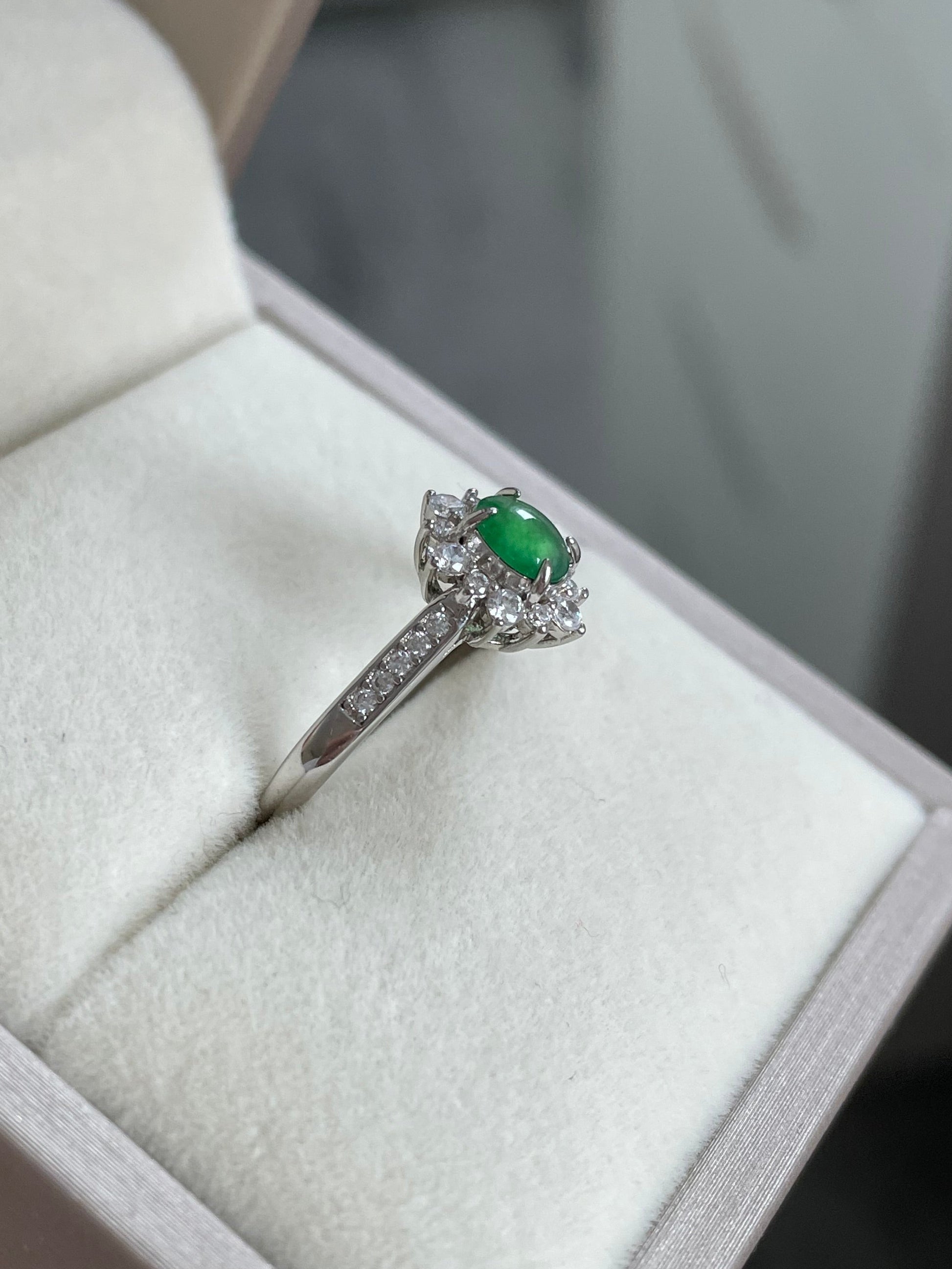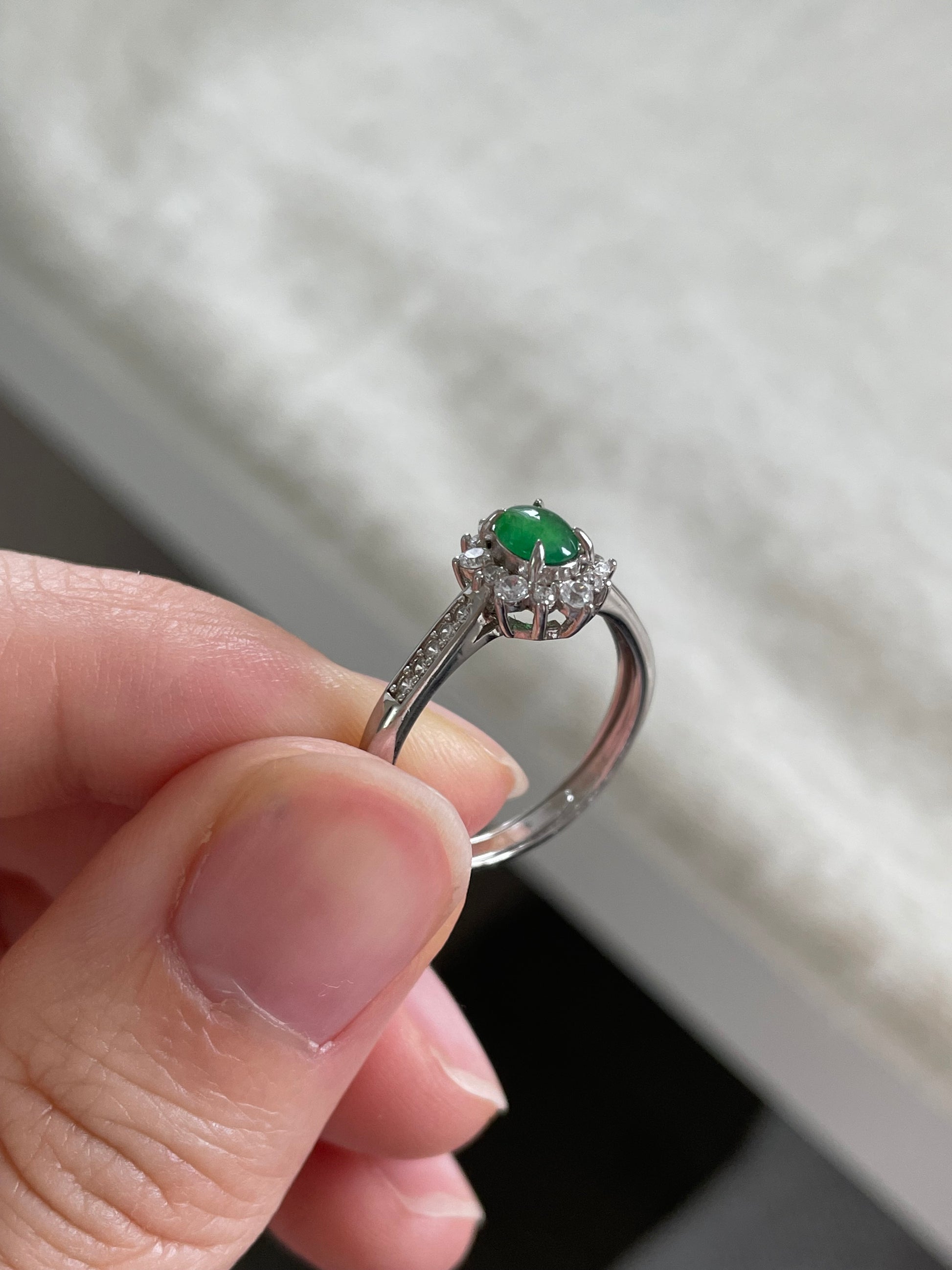 天然缅甸翡翠;戒圈尺寸可调节;附鉴定证书。