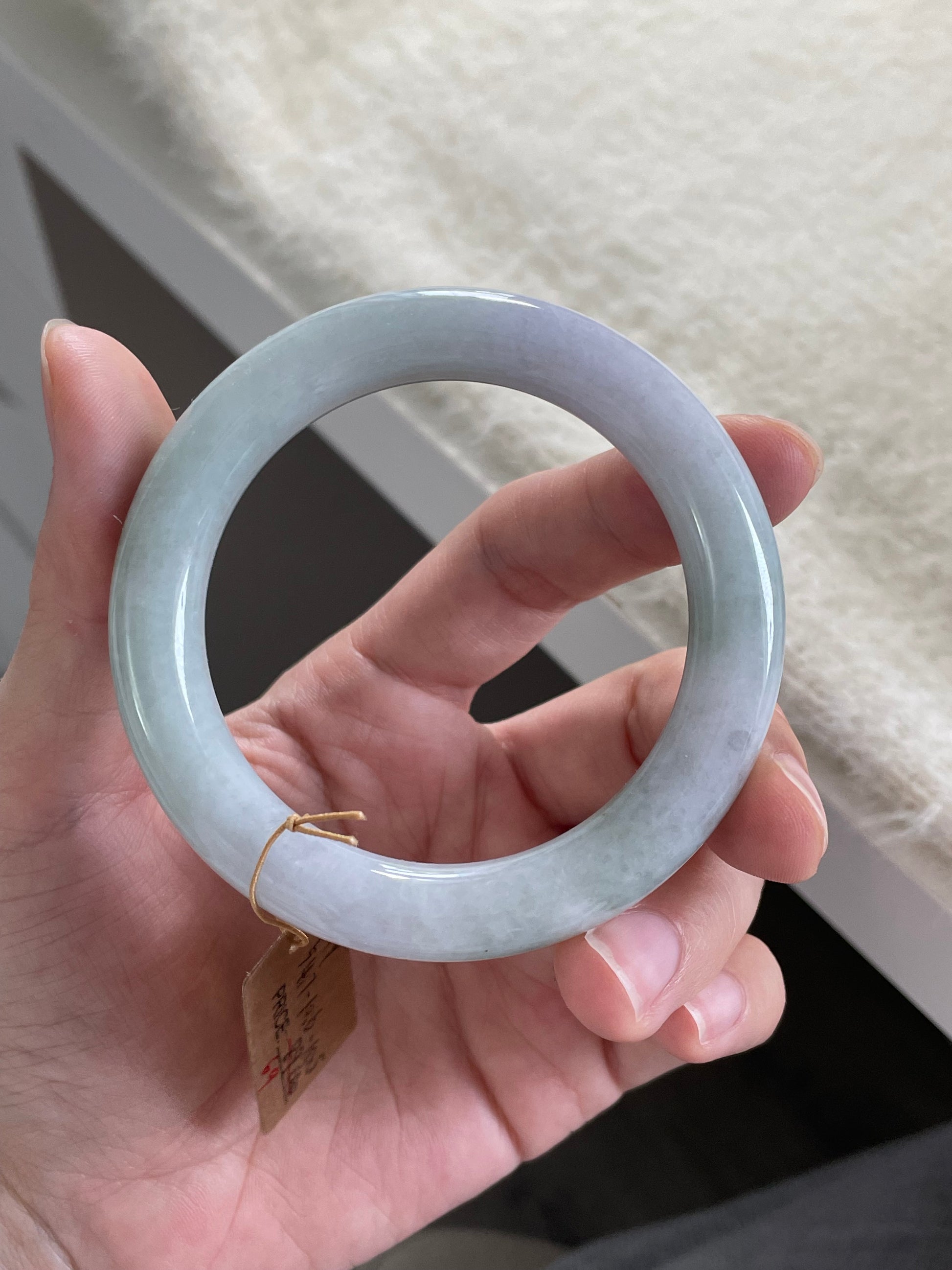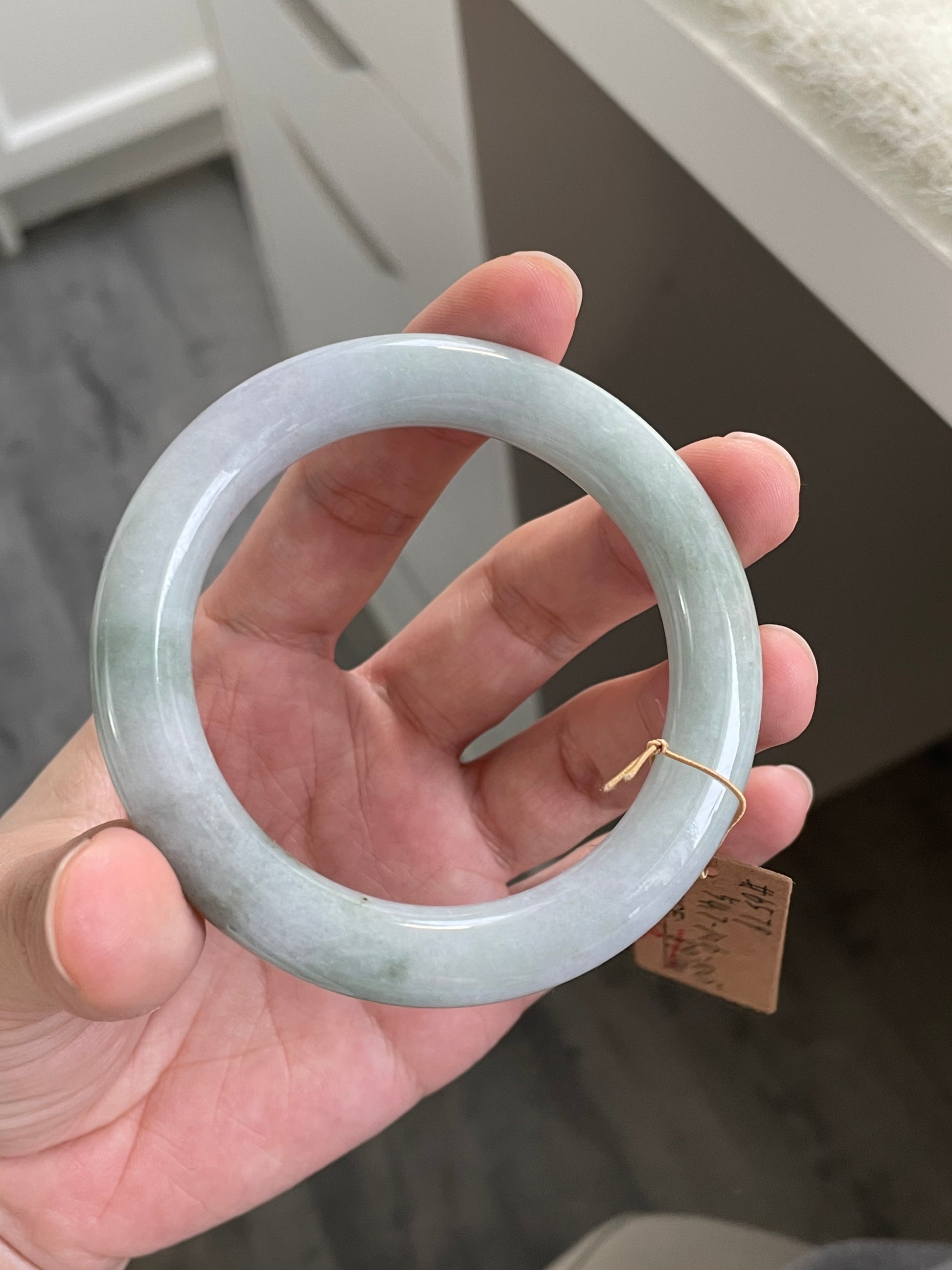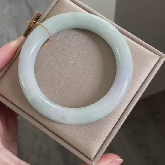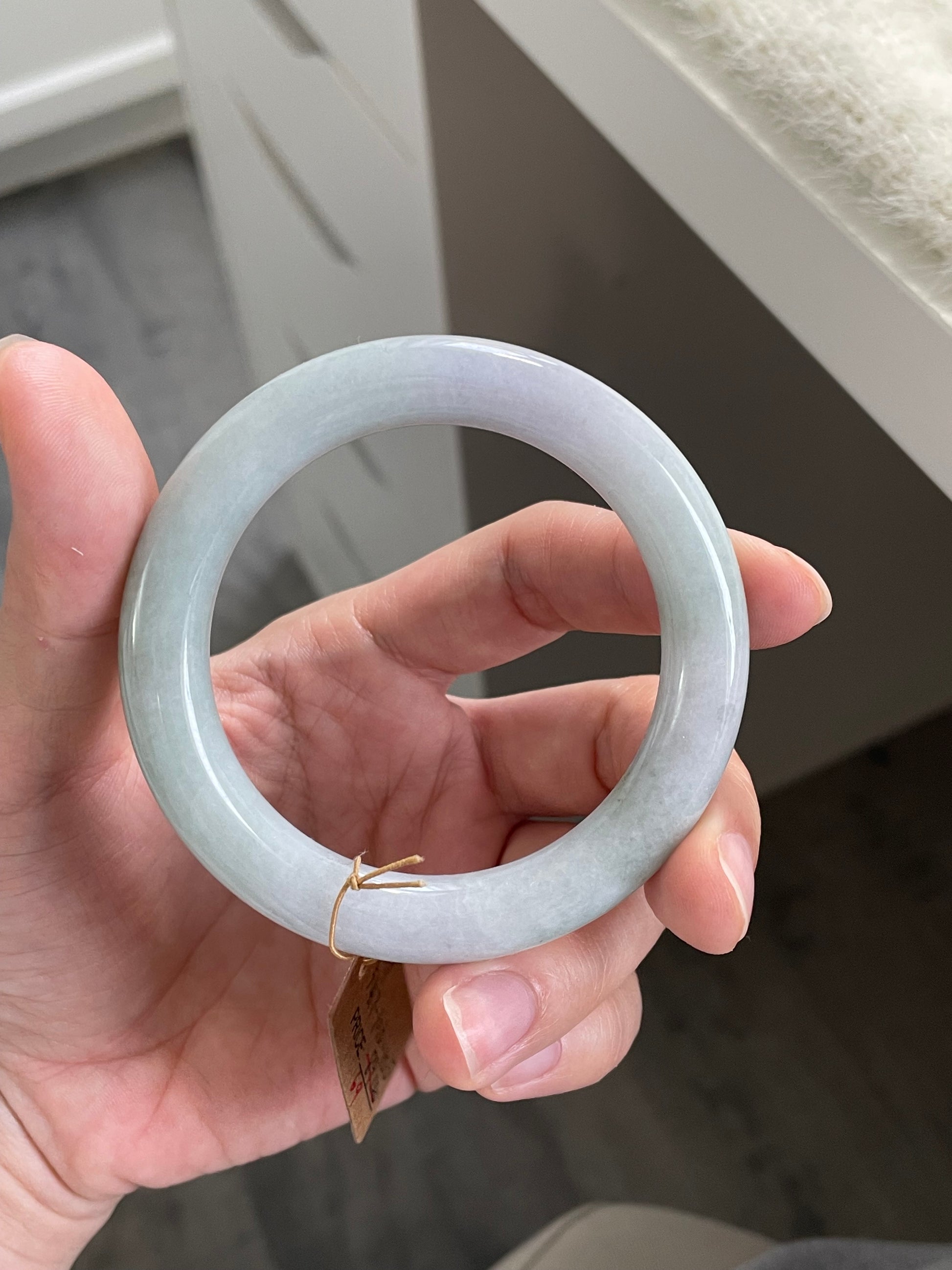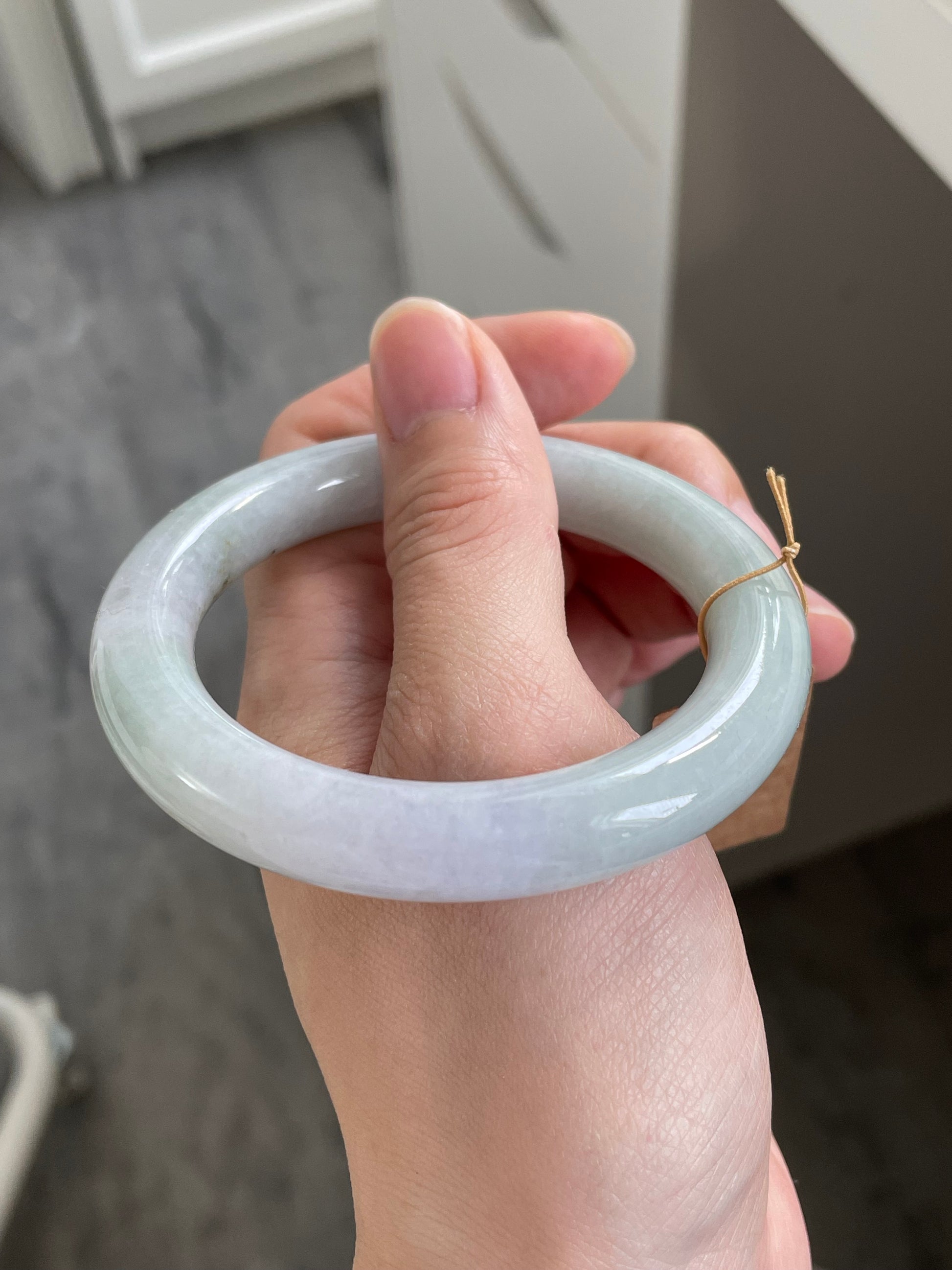 以绿色和紫色为底色,底子较细腻,颜色柔和过渡自然,条形饱满圆润;上手显气质温柔清爽,日常佩戴百搭耐看。尺寸约54.7mm,条宽约 10.6mm,厚度约 10.5mm。