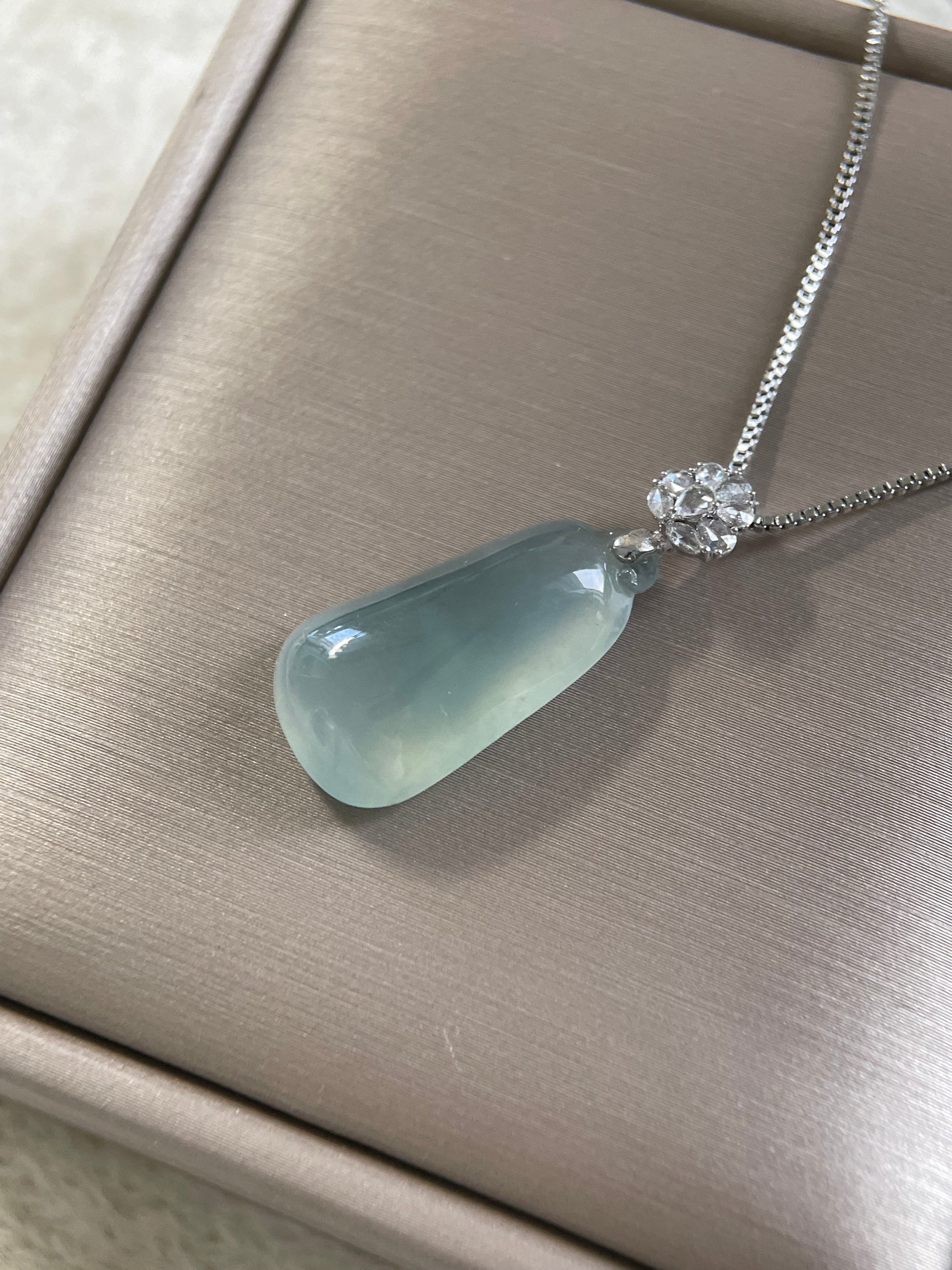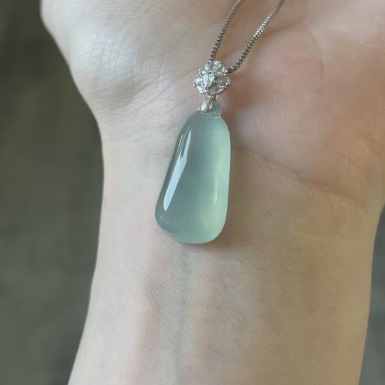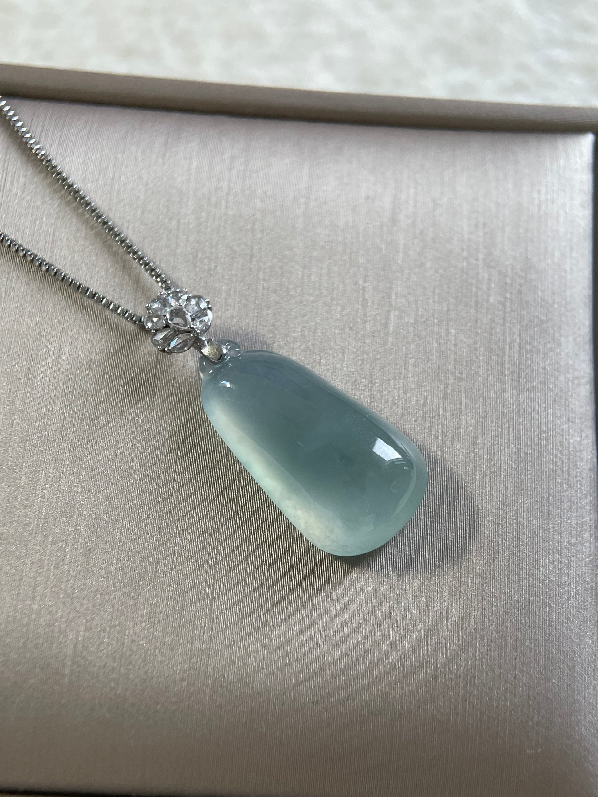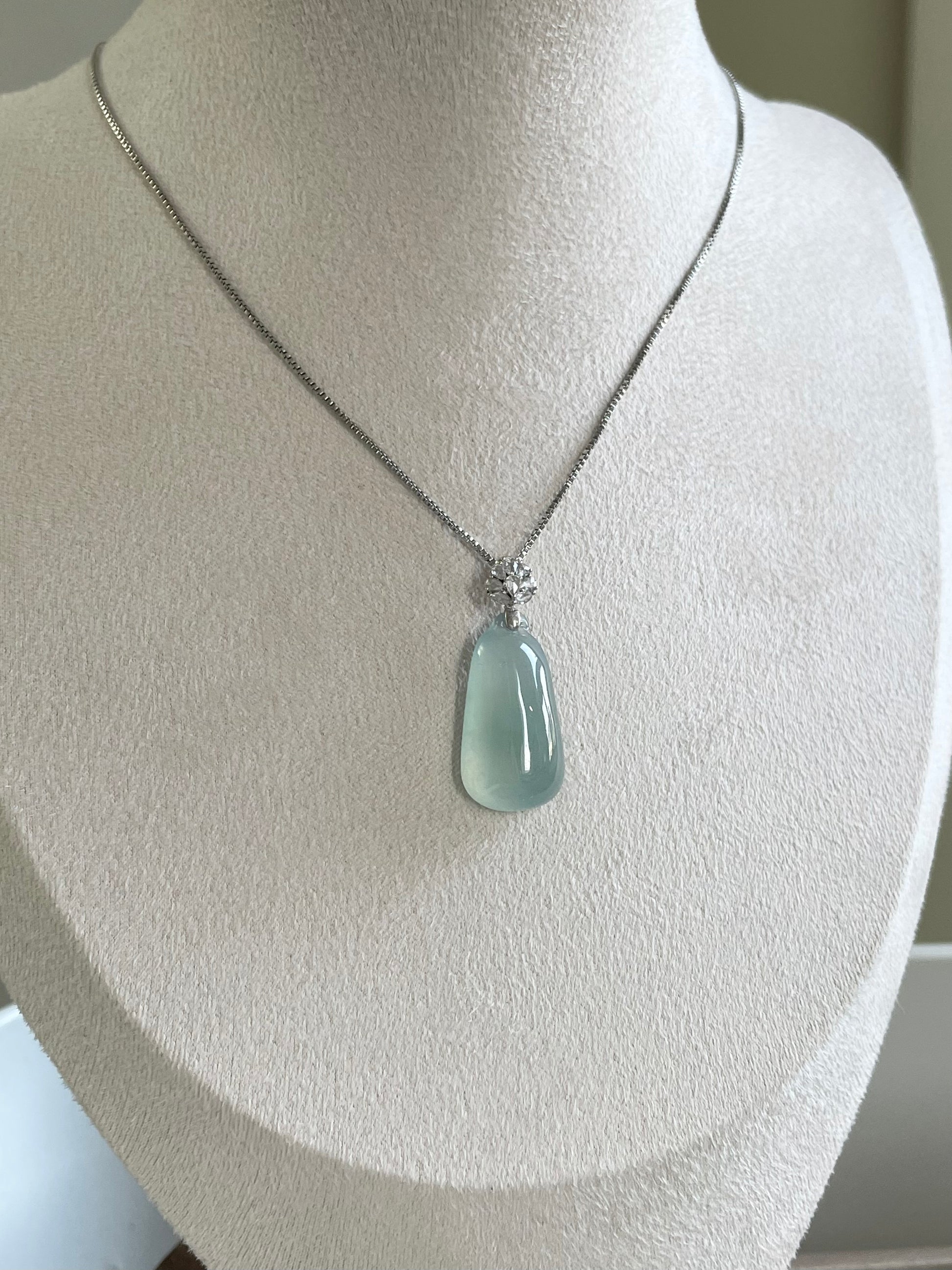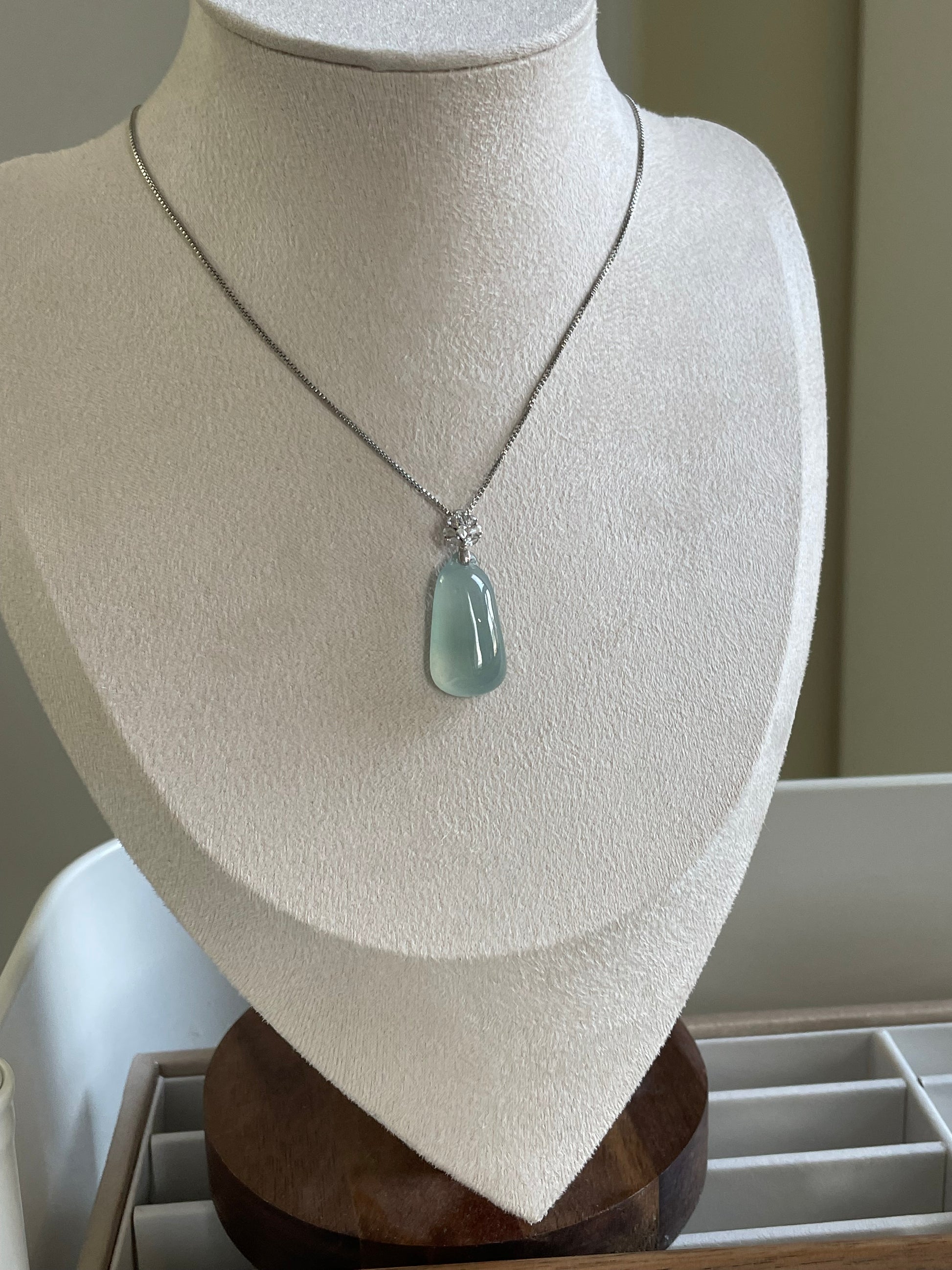 天然缅甸翡翠;完美无纹裂;配925纯银项链;附鉴定证书。