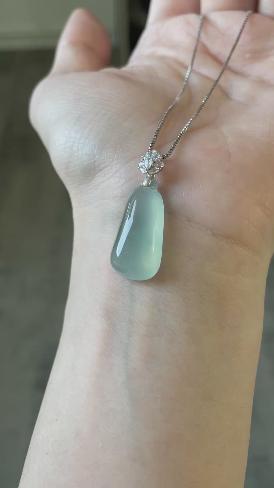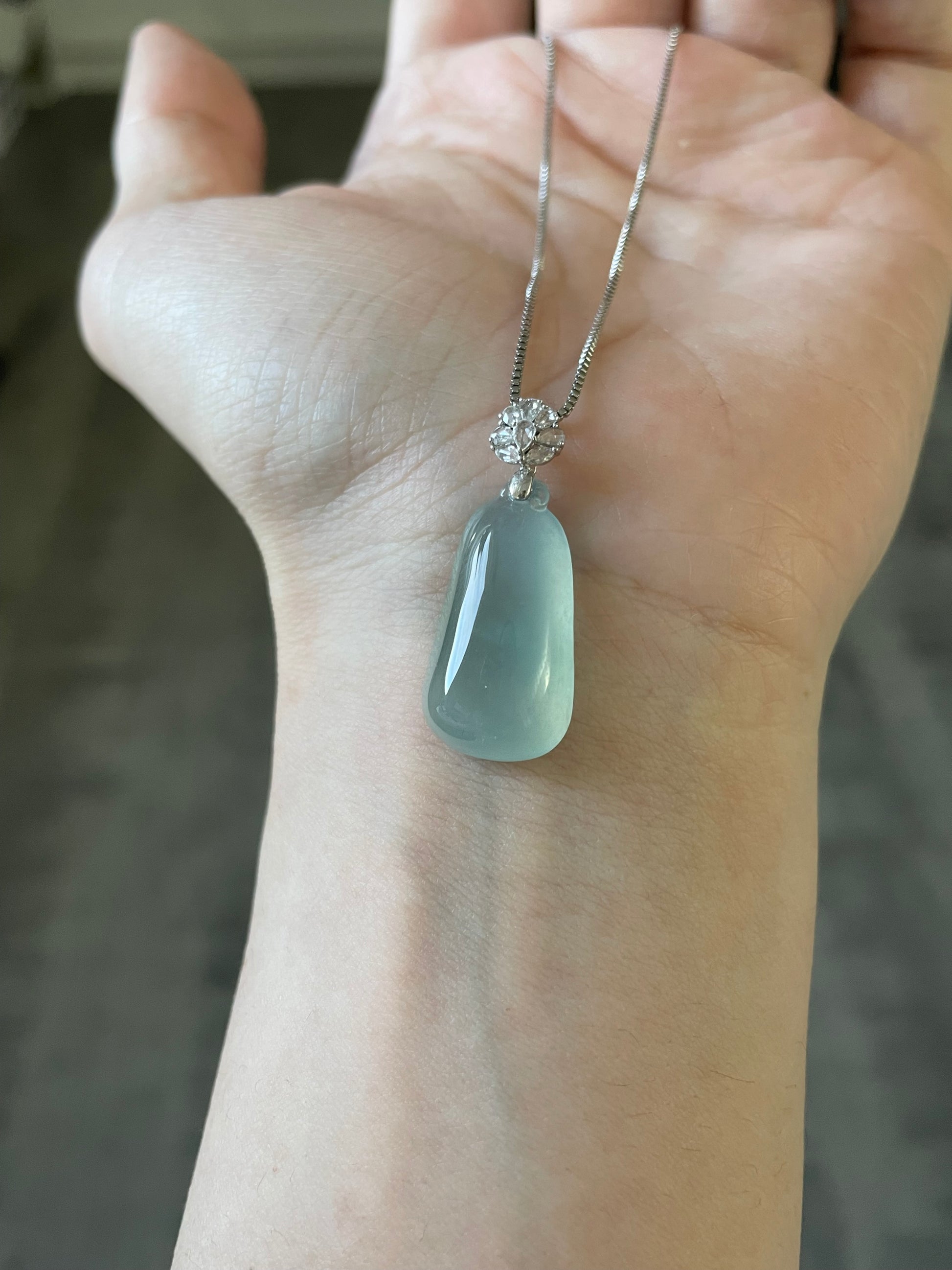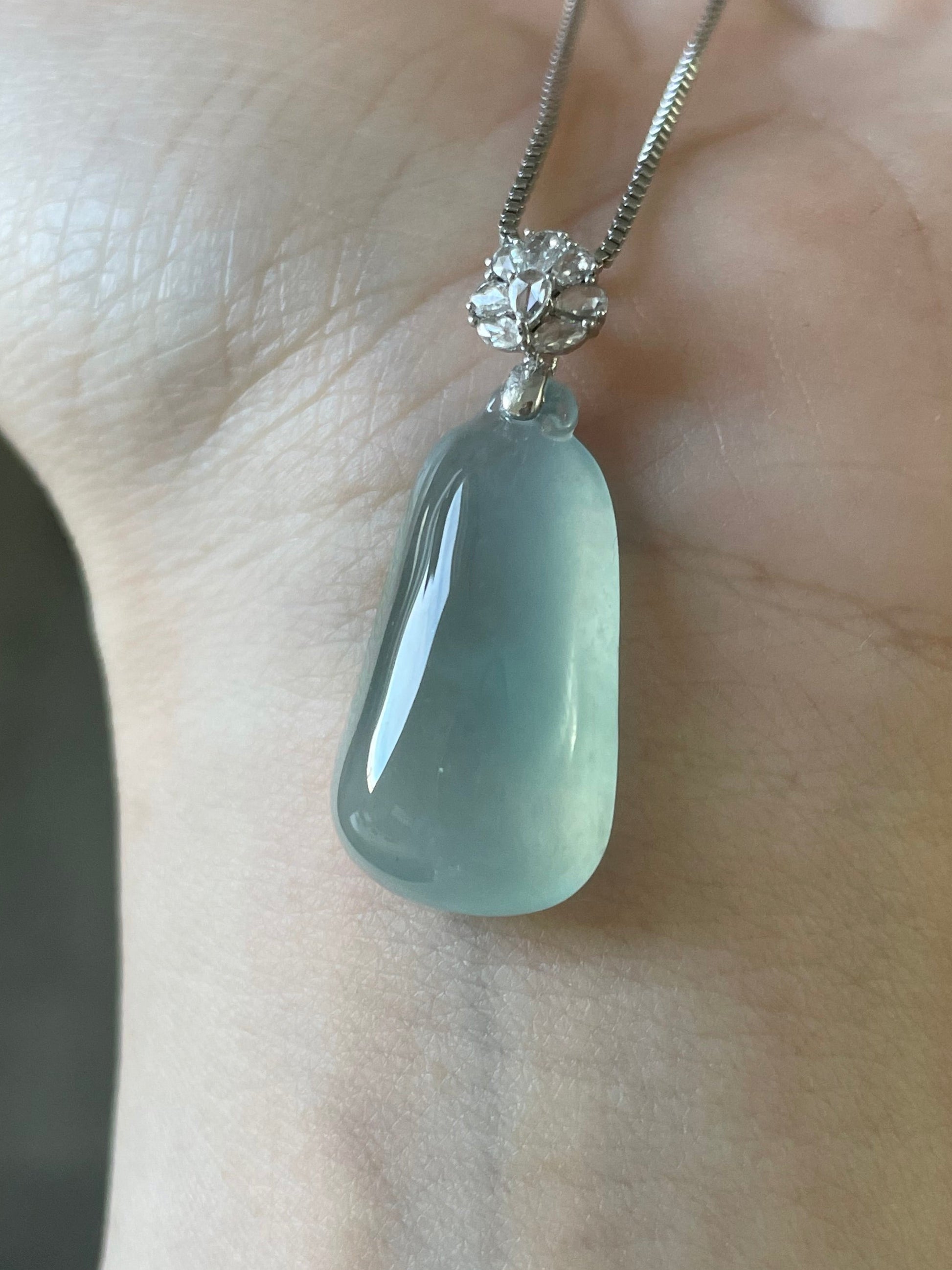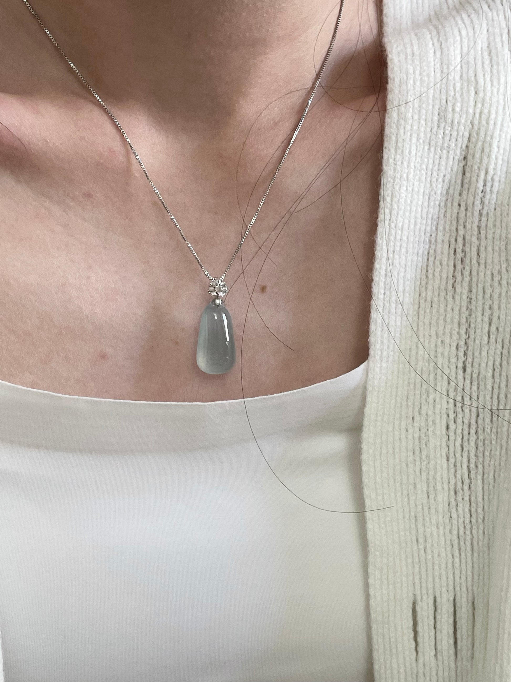 天然缅甸翡翠;完美无纹裂;配925纯银项链;附鉴定证书。