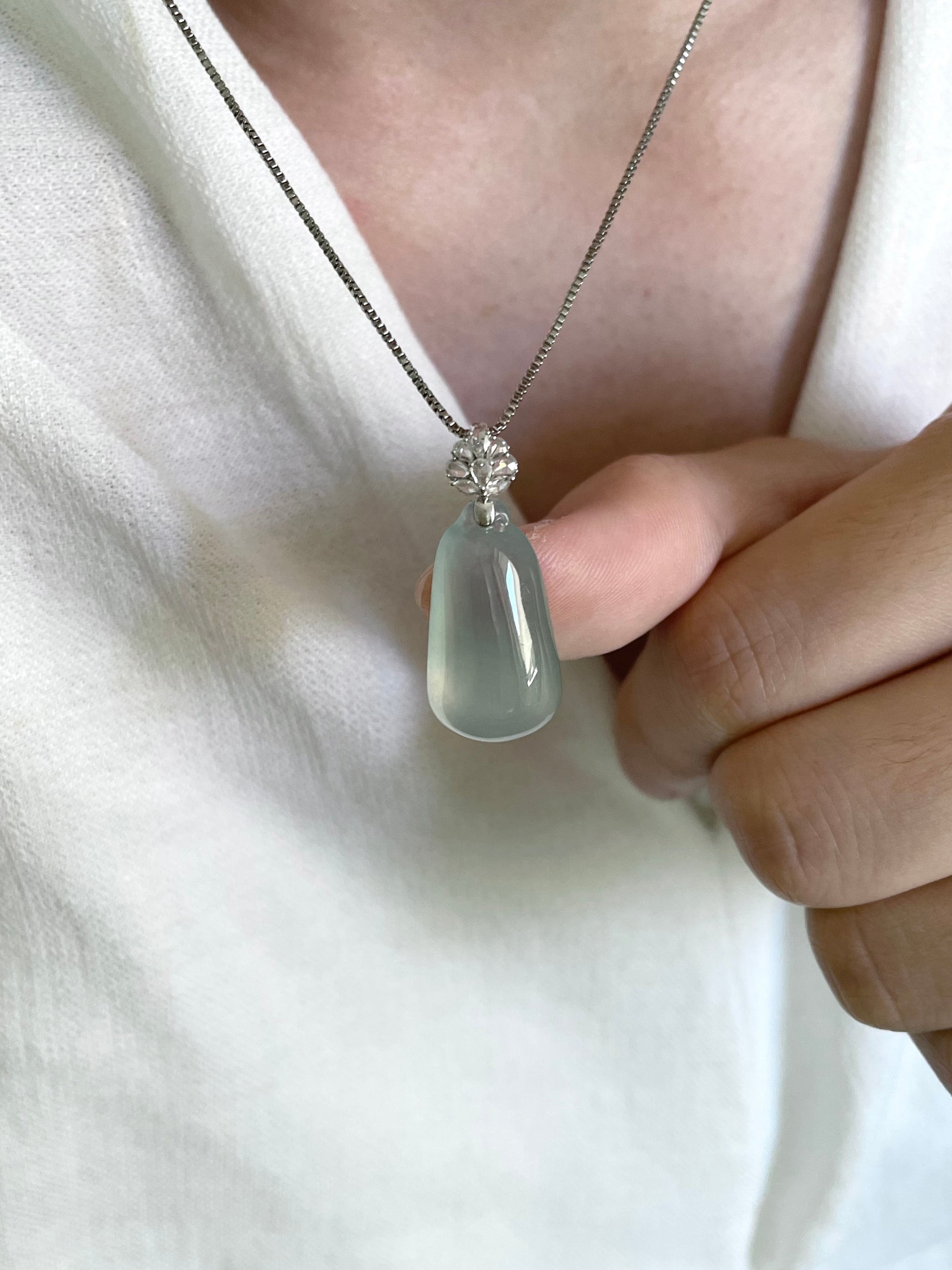 18k真金伴真钻镶嵌雪花扣头,和福瓜的冰透相得益彰,整场简约精致大方,佩戴在锁骨间灵动又优雅。