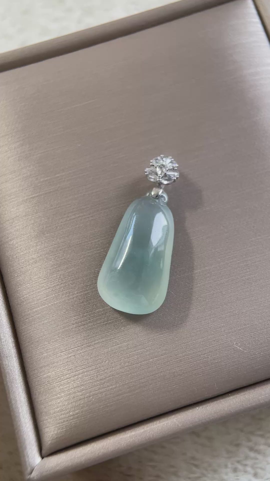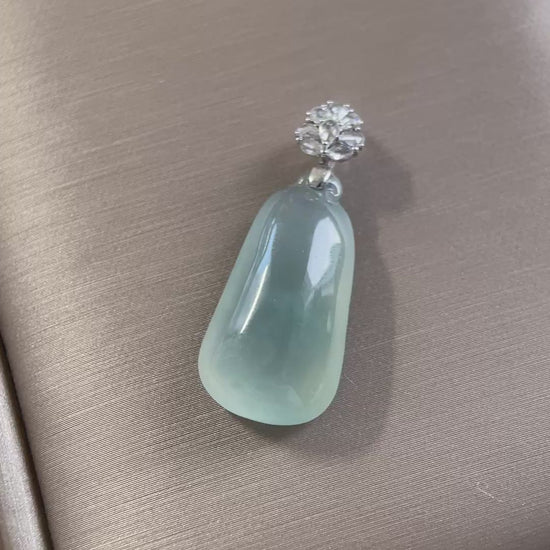 高冰福瓜吊坠,通体清透莹亮,冰感十足,种老起胶,光泽细腻柔和,像一汪清泉,非常干净治愈。瓜形饱满厚实,线条自然流畅,整体比例匀称形正;“福瓜””谐音“福挂”,寓意好运随身、福气满满,是极具人气的吉祥题材。