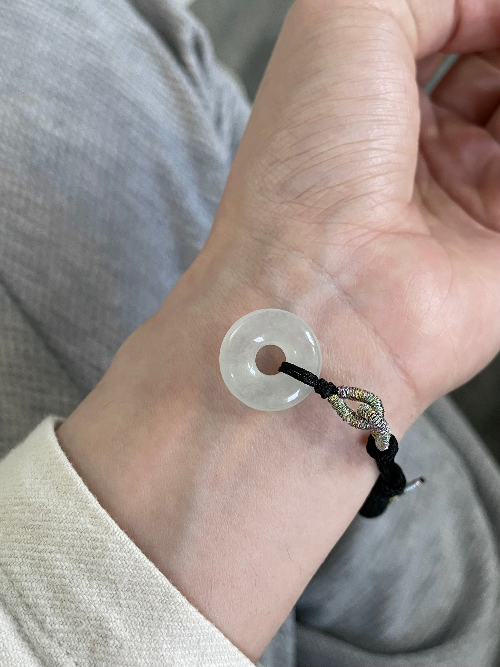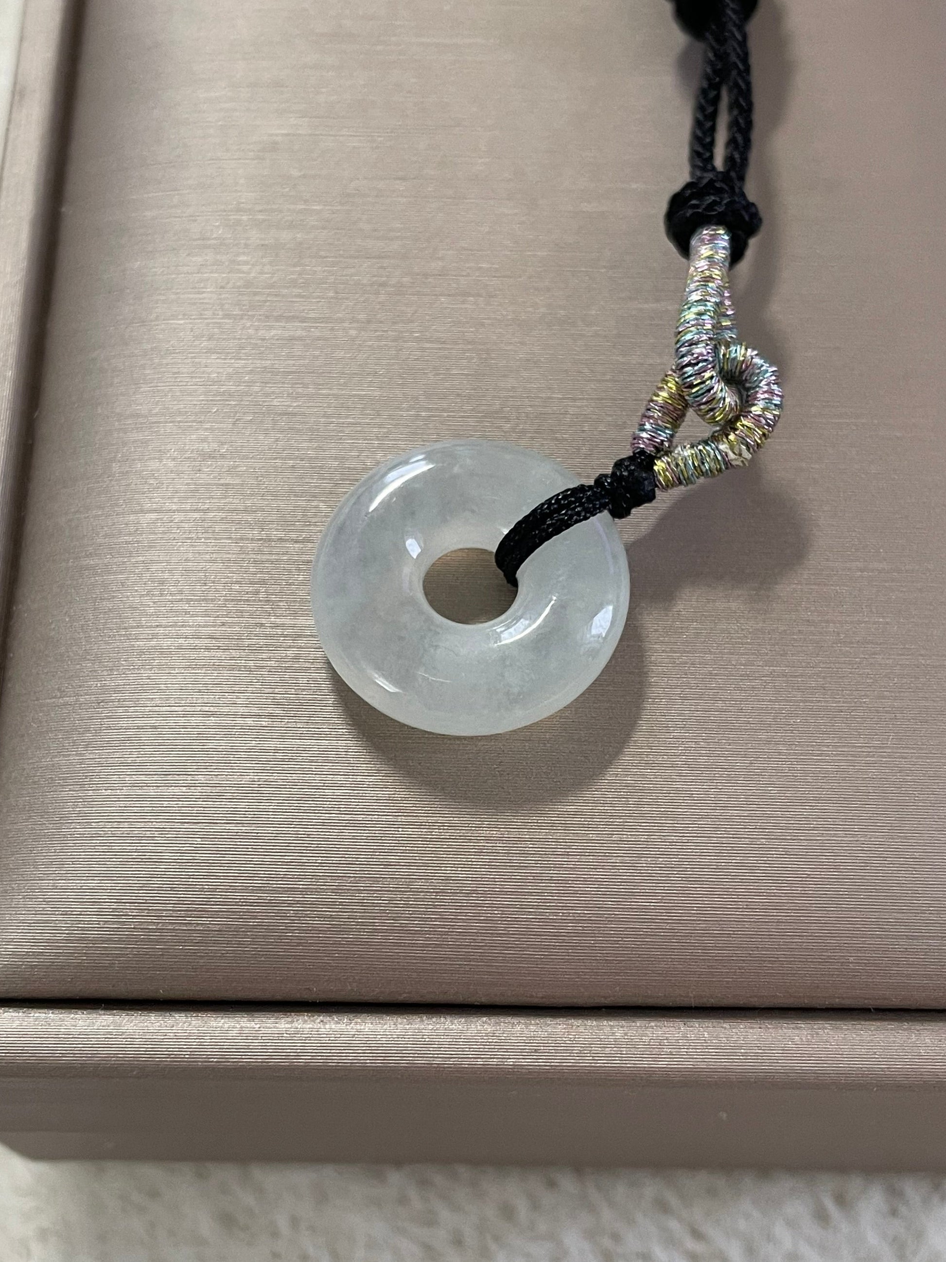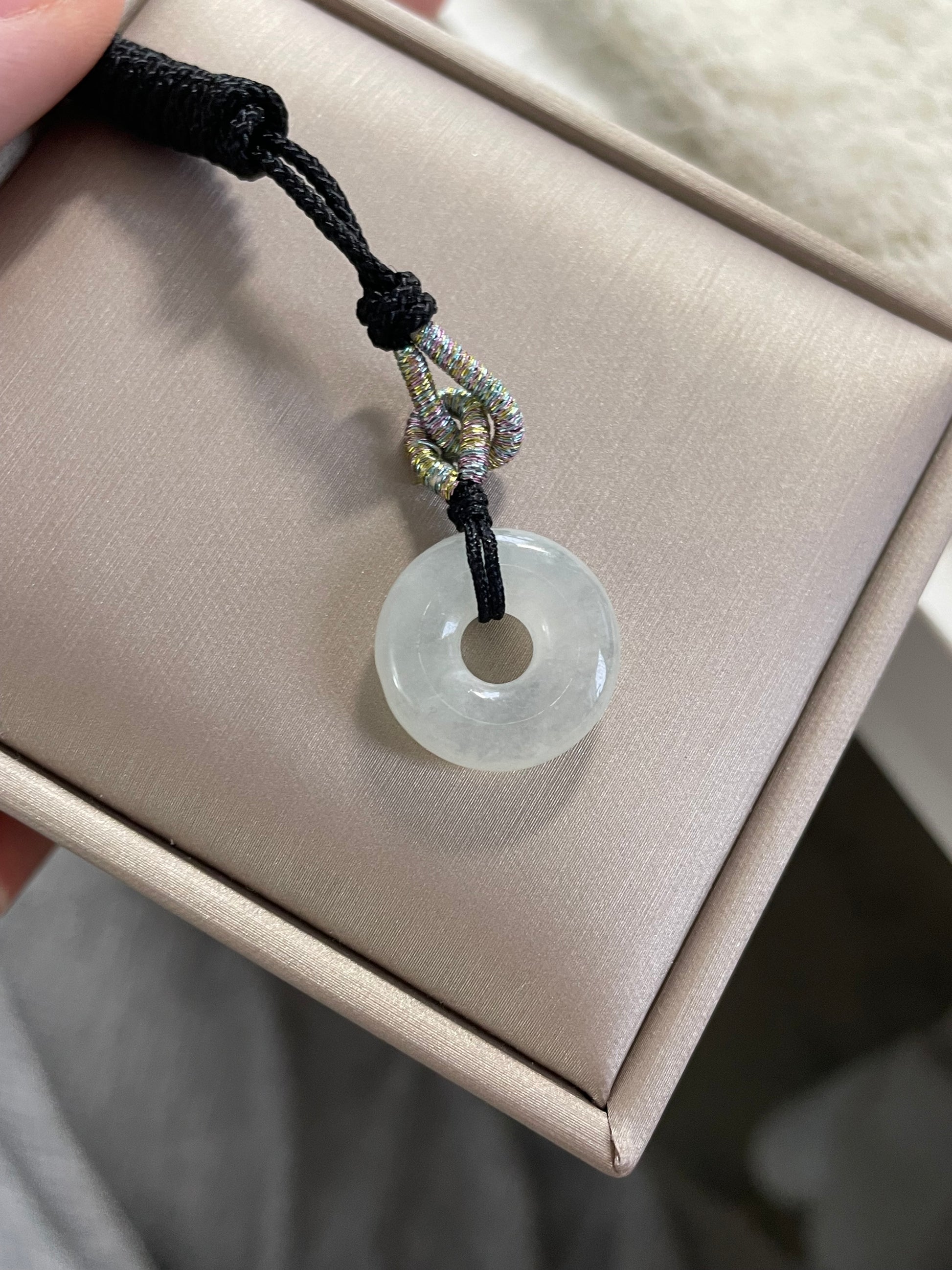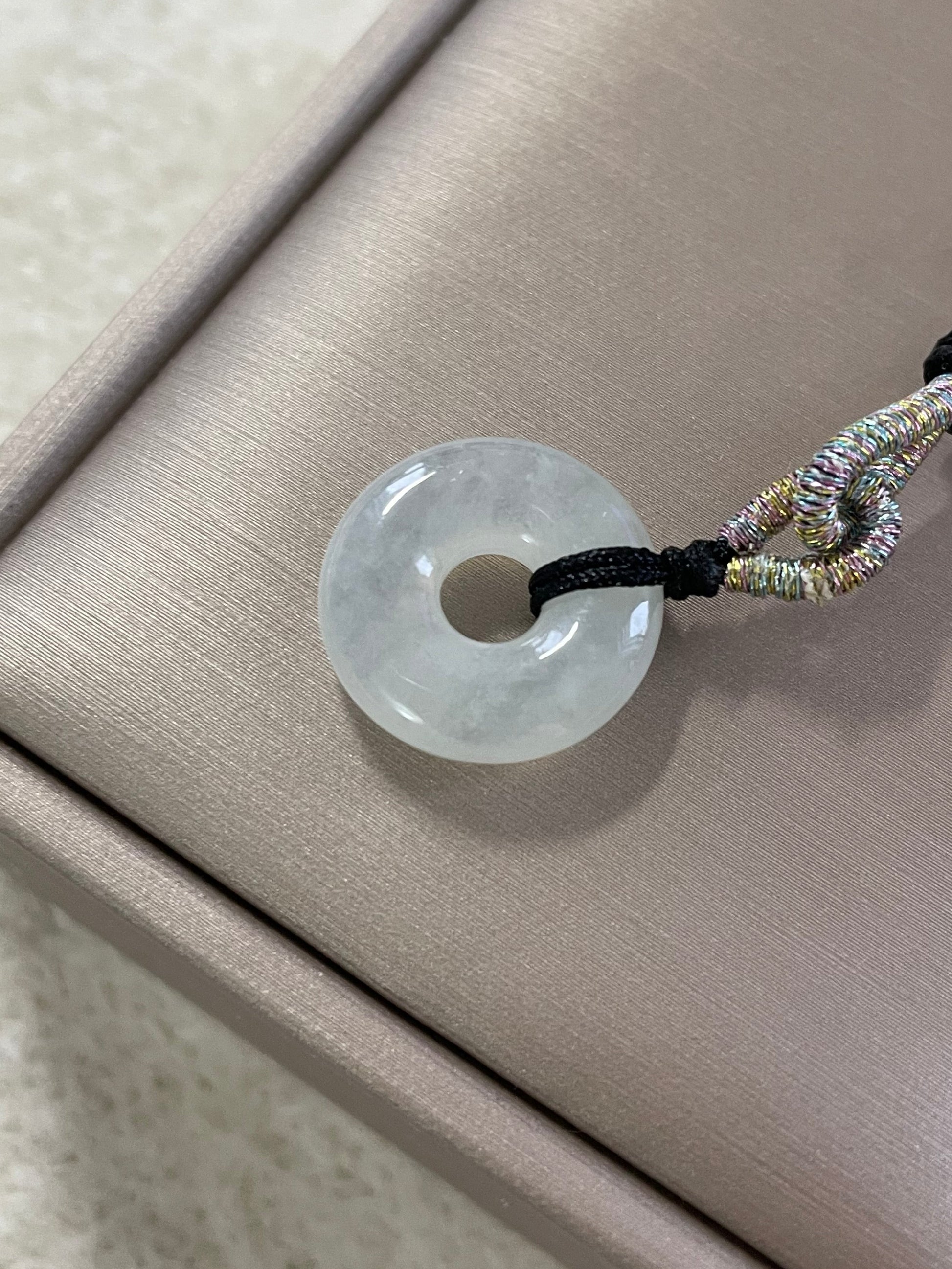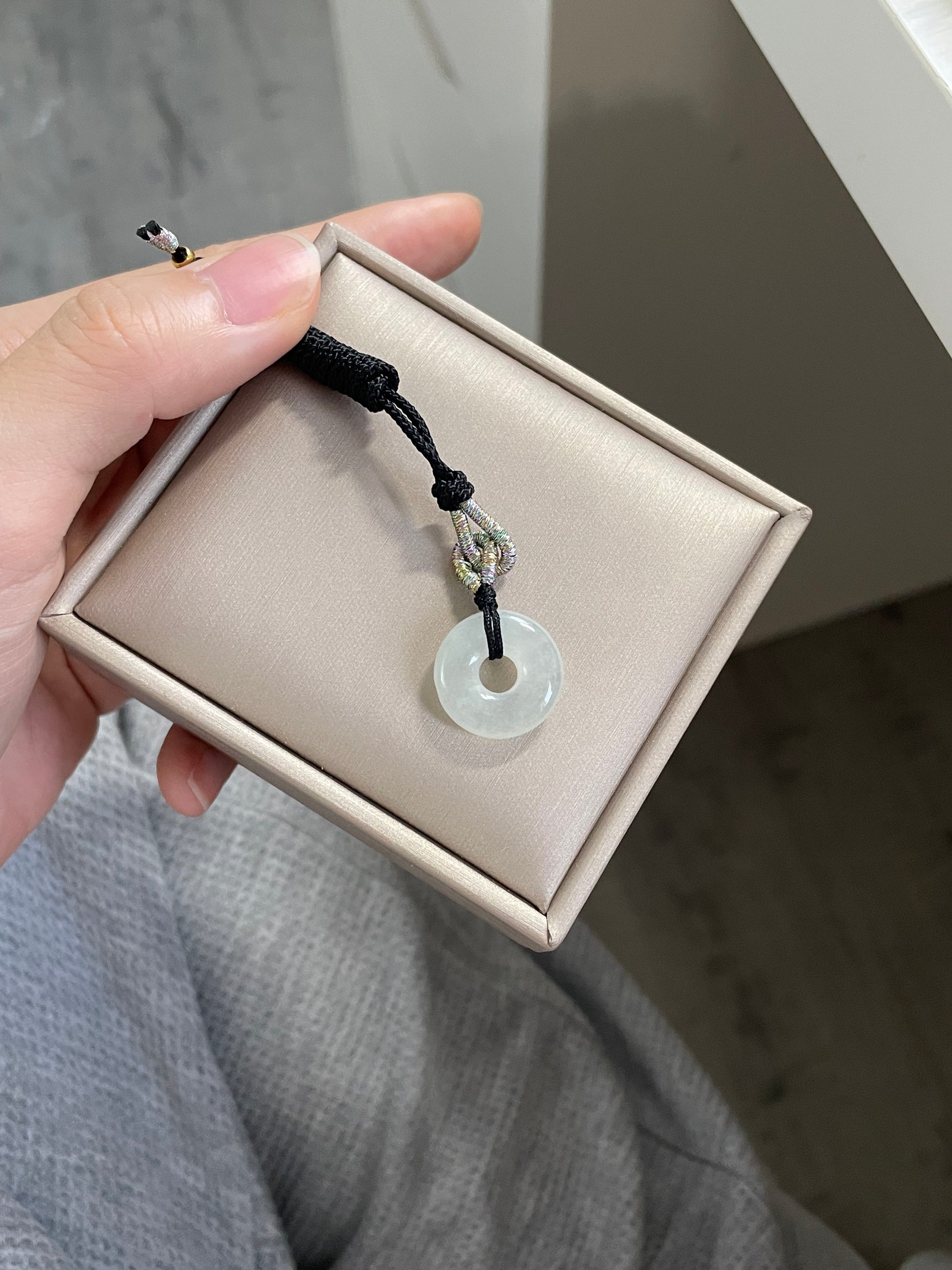 平安扣为白冰底翡翠,冰种白月光翡翠,干净通透水润。平安扣扣形象征平安顺遂,这个尺寸给小朋友戴求个平安是最好的,也可以编绳做手绳。上身温柔耐看。翡翠尺寸宽17mm,厚5mm。