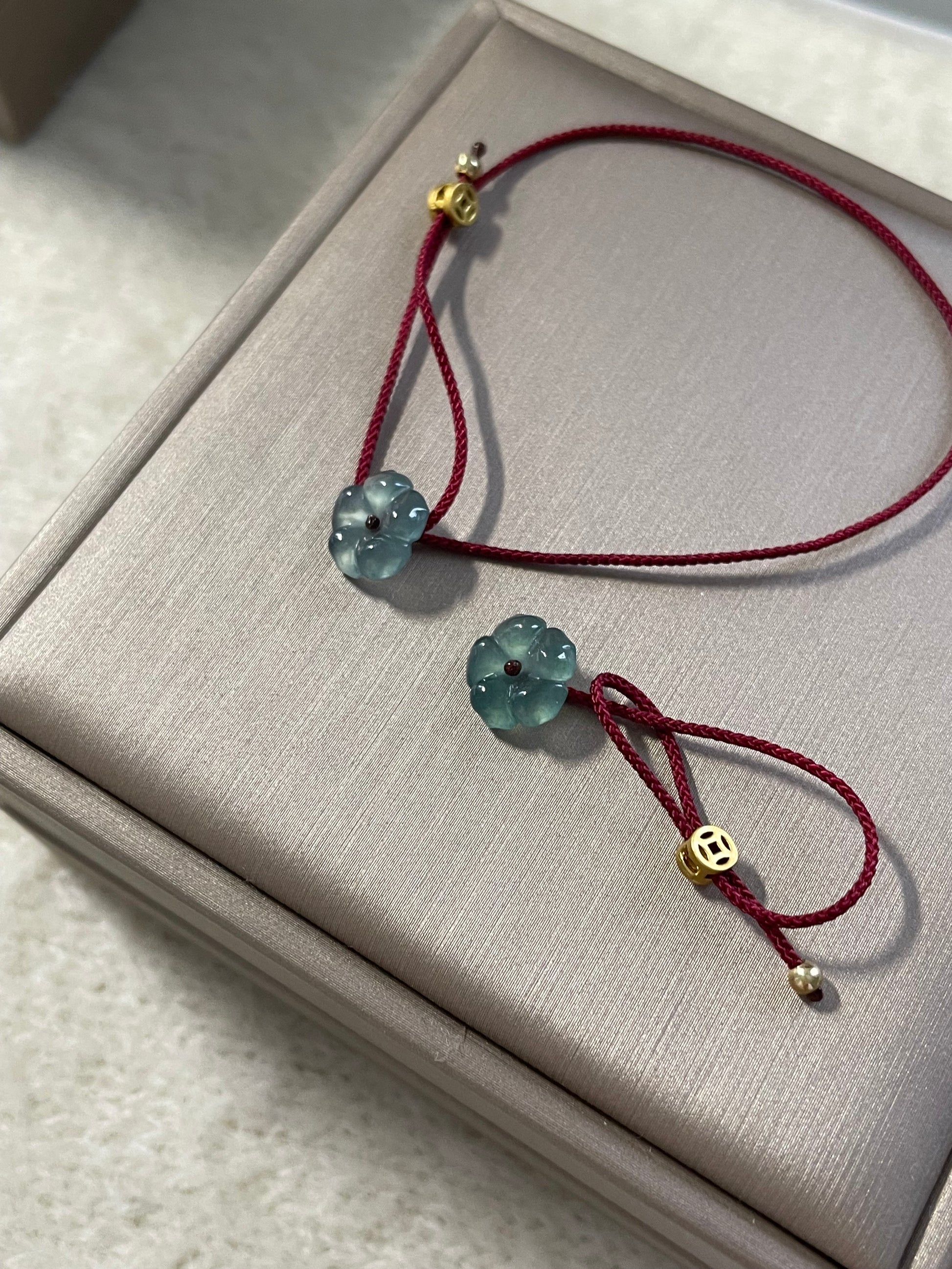 天然危地马拉翡翠,形状小花,颜色偏蓝绿色,种水好,起莹起光,上手很灵动。无纹无裂。