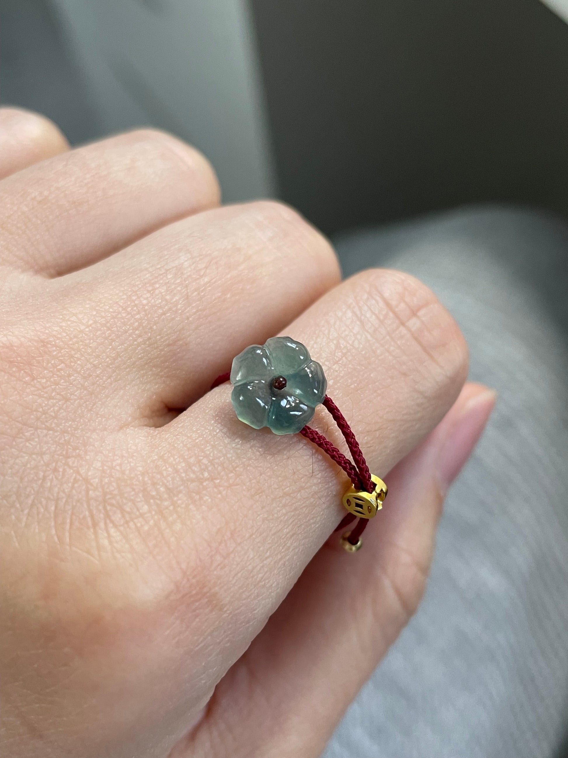 翡翠小花红绳-戒指