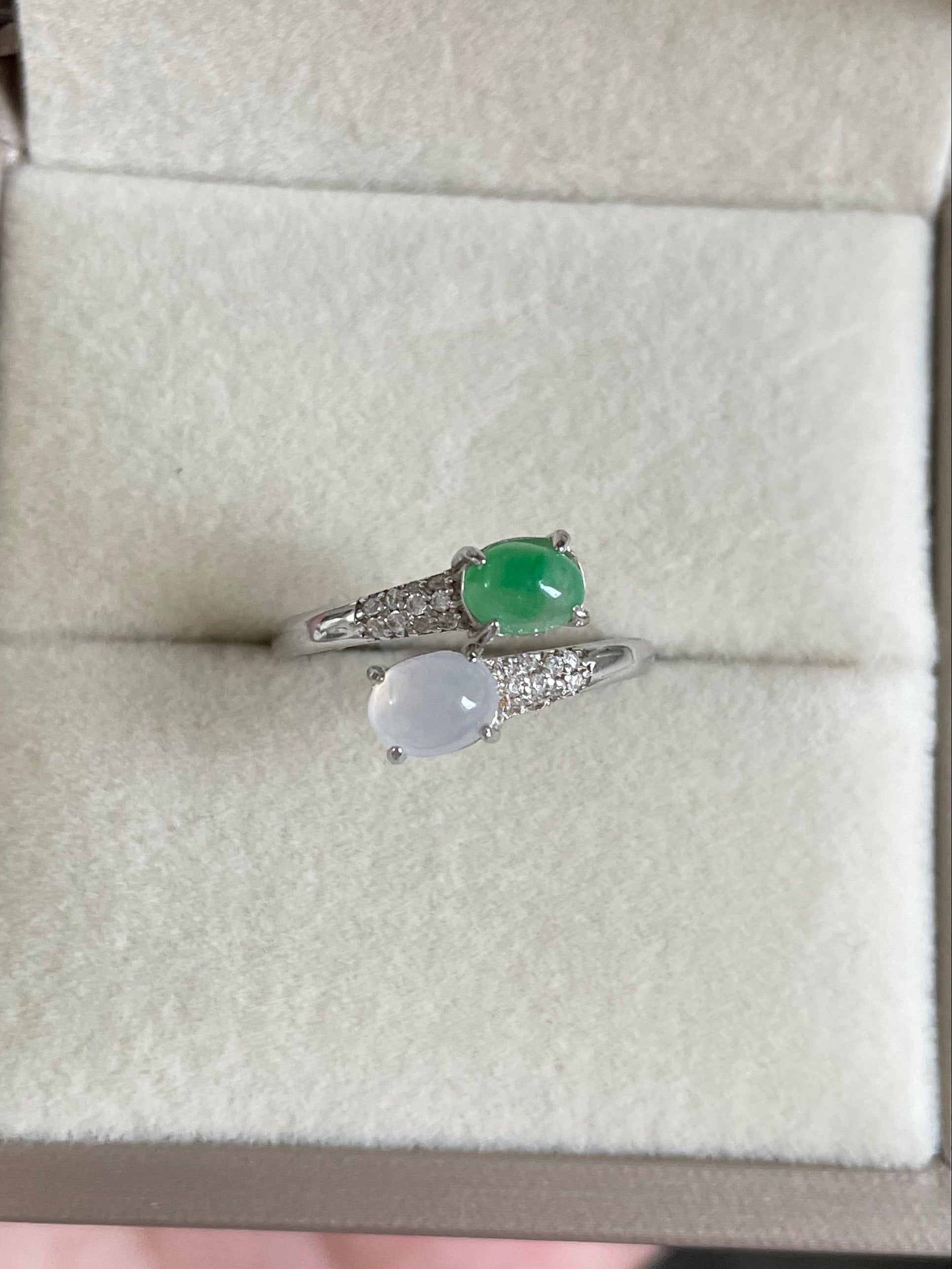 天然缅甸翡翠;戒圈尺寸可调节;附鉴定证书。