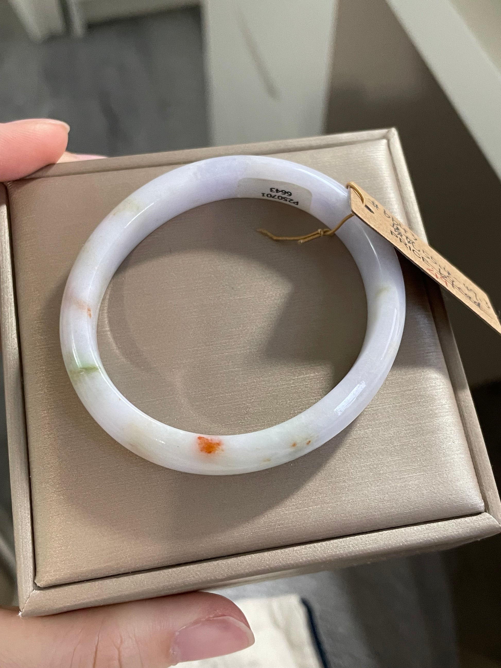 手镯默认含天然纹裂,不影响整体佩戴与牢固性。附鉴定证书。