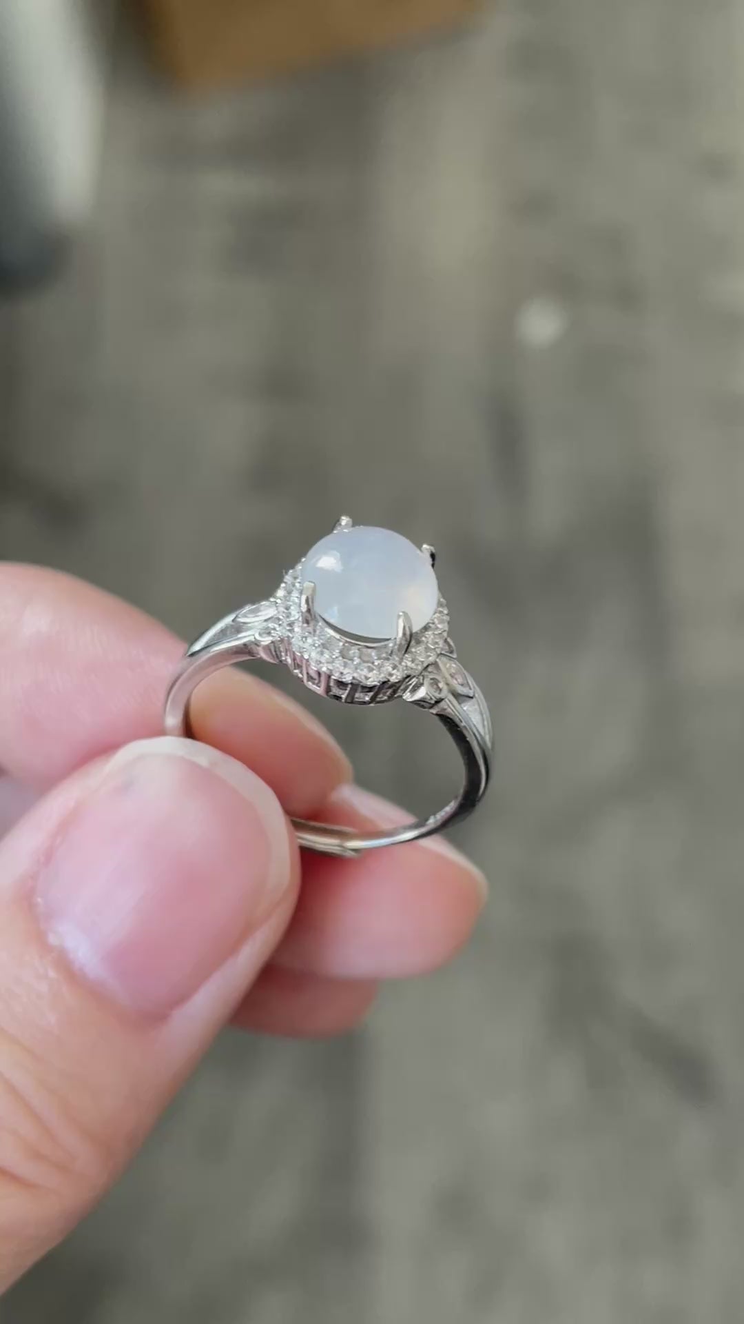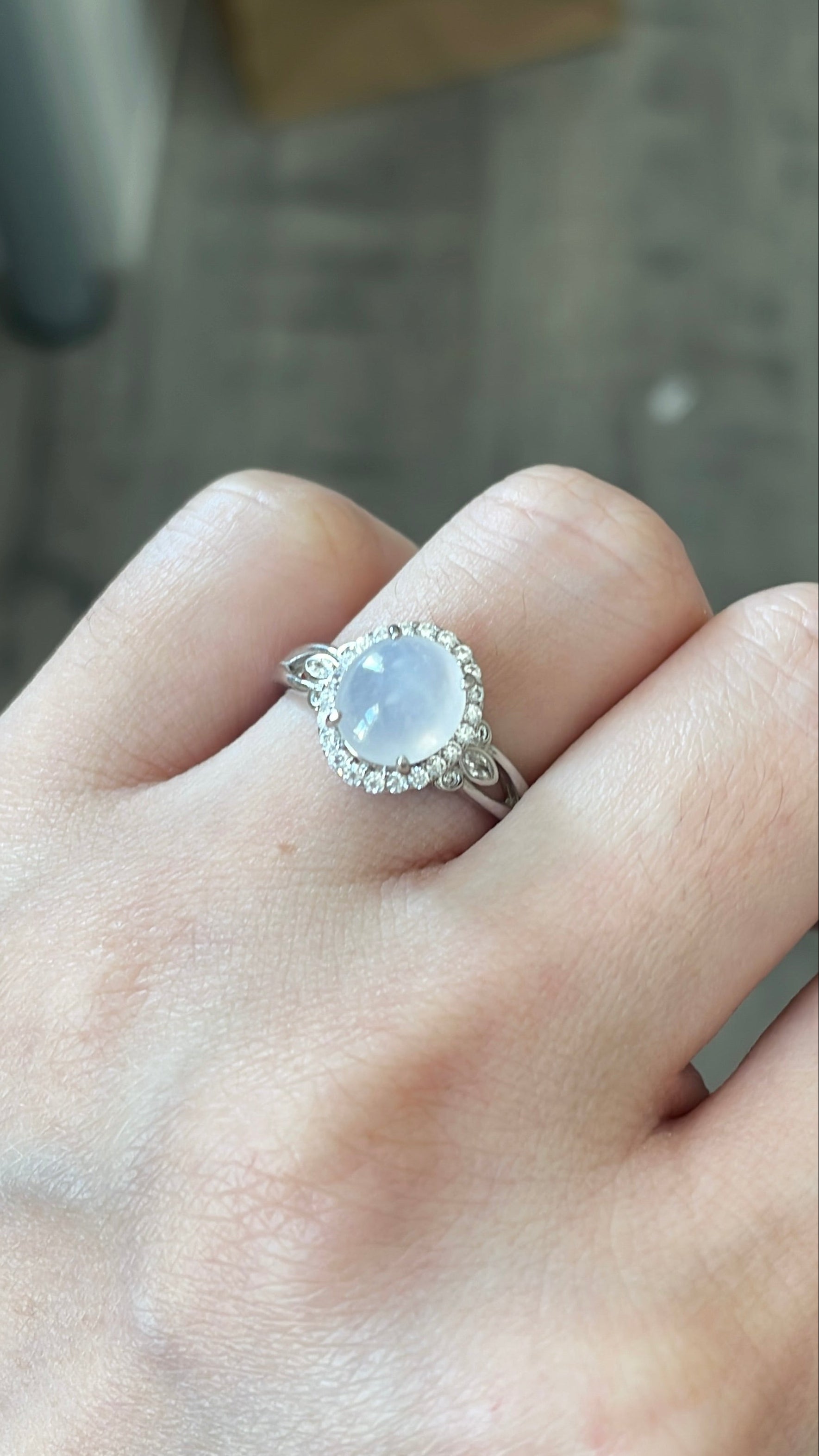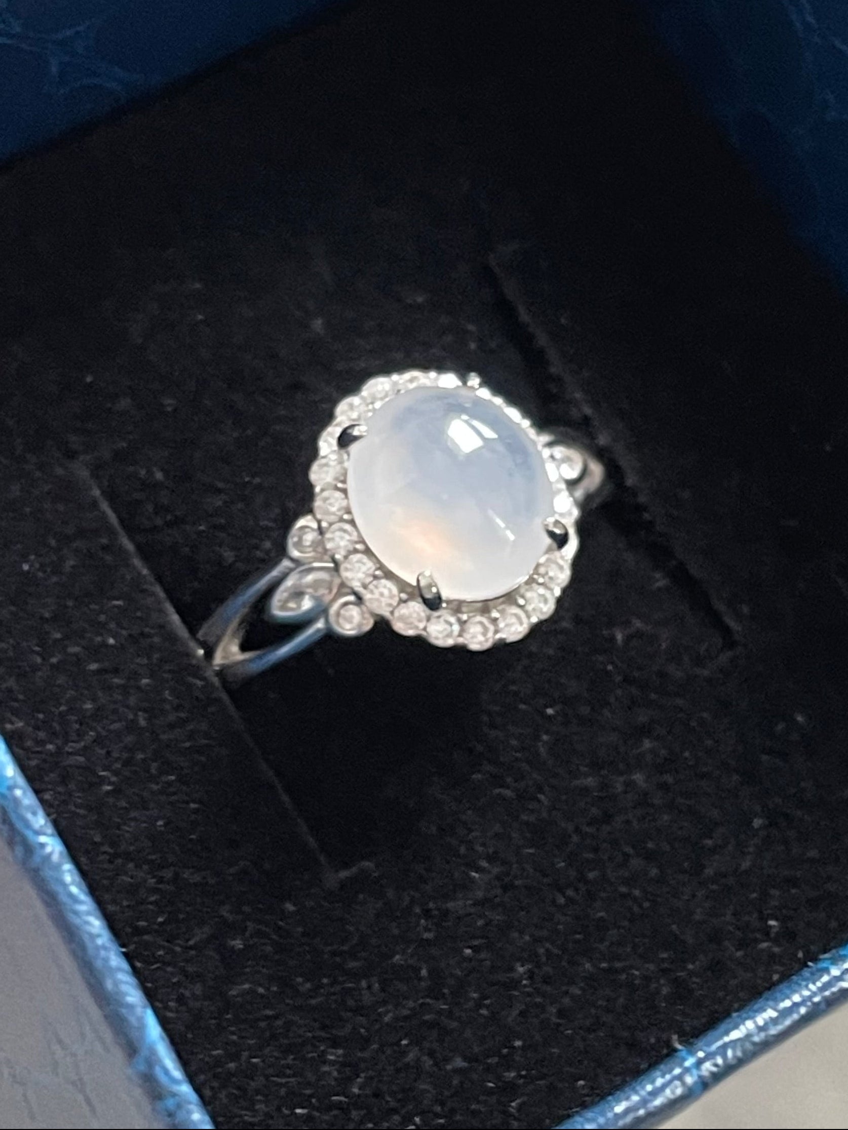 白冰蛋面戒指,饱满厚实,简约大气,925银镶