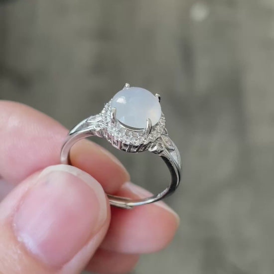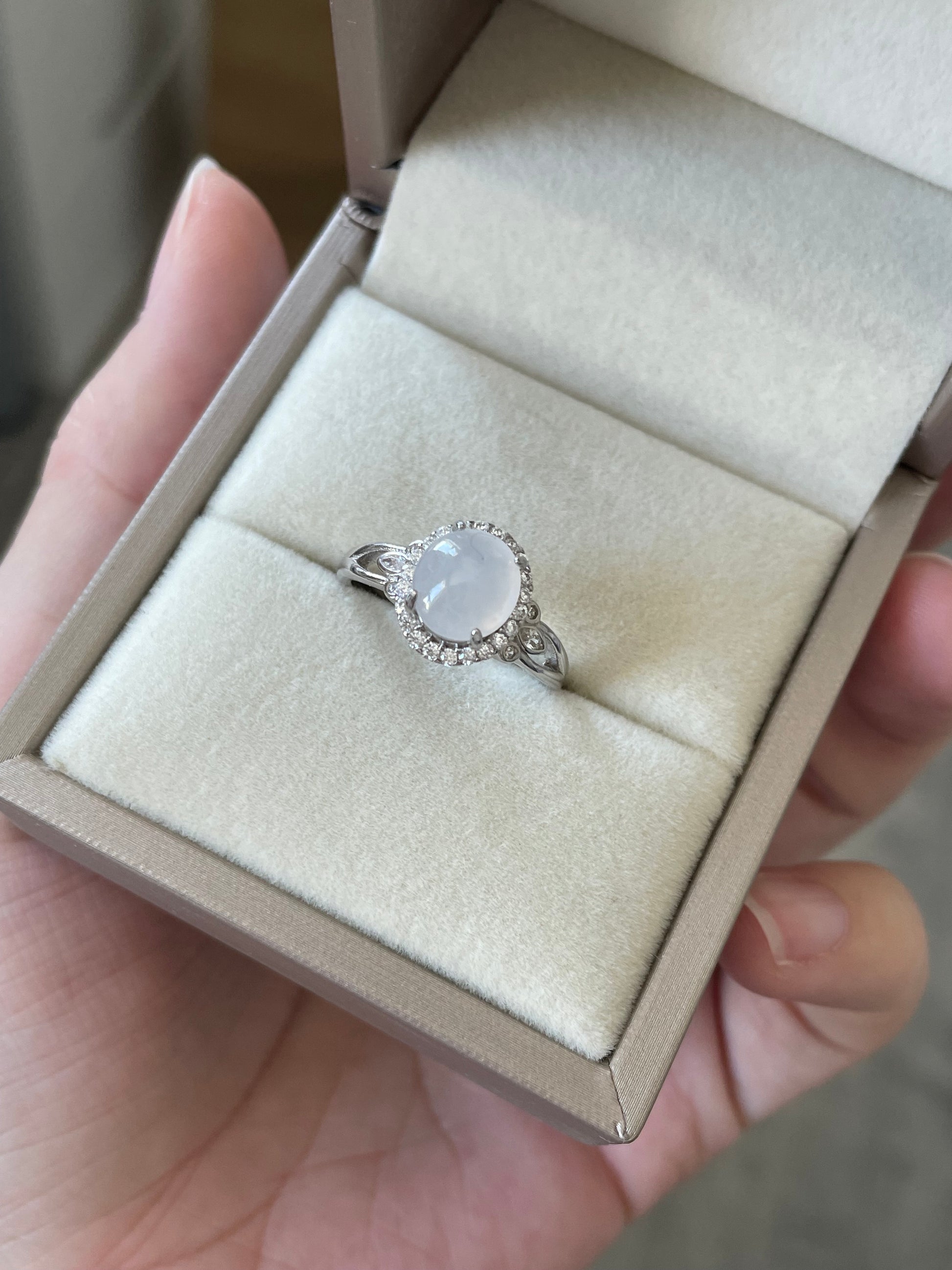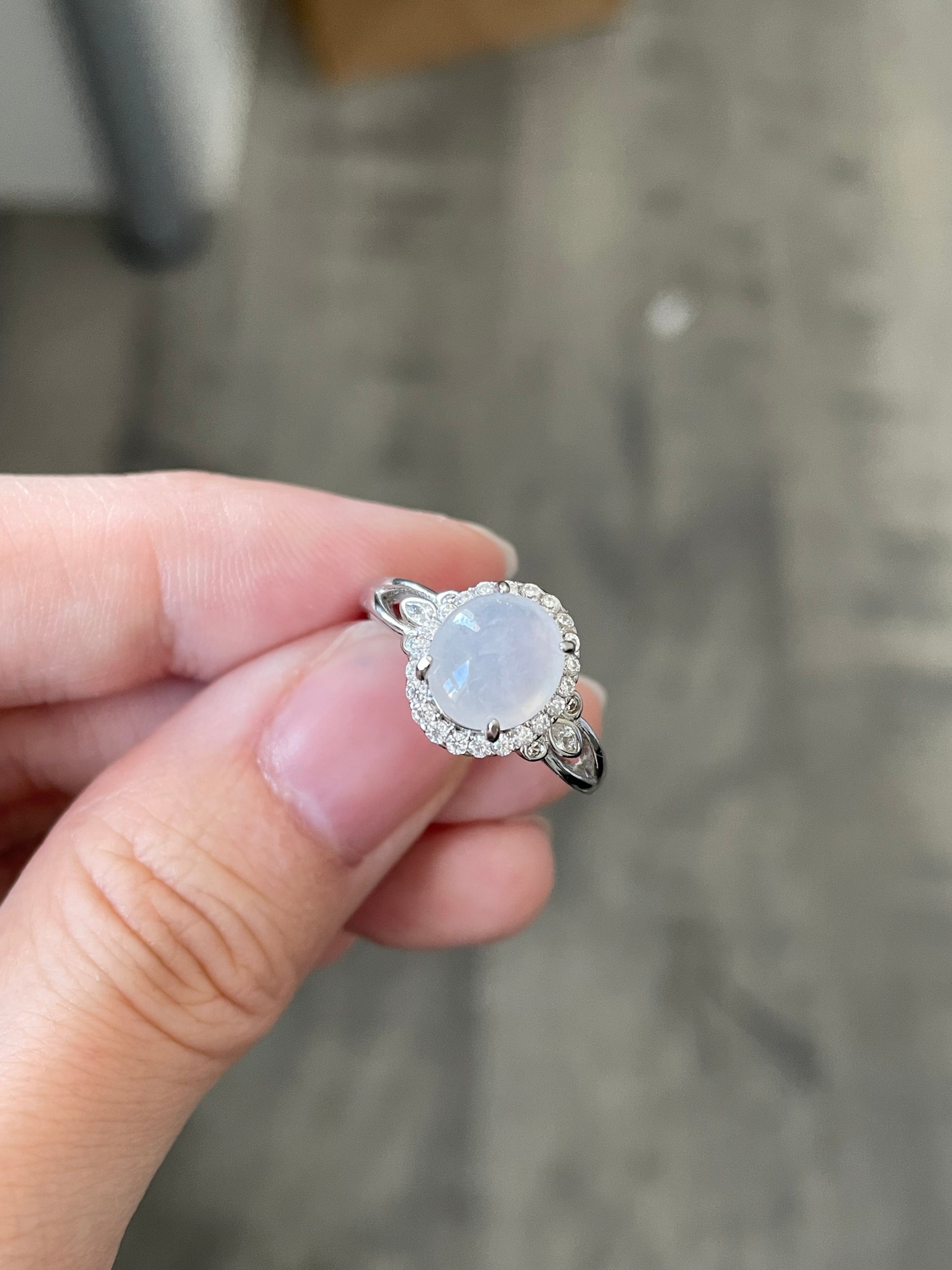 白冰蛋面戒指,饱满厚实,简约大气,925银镶